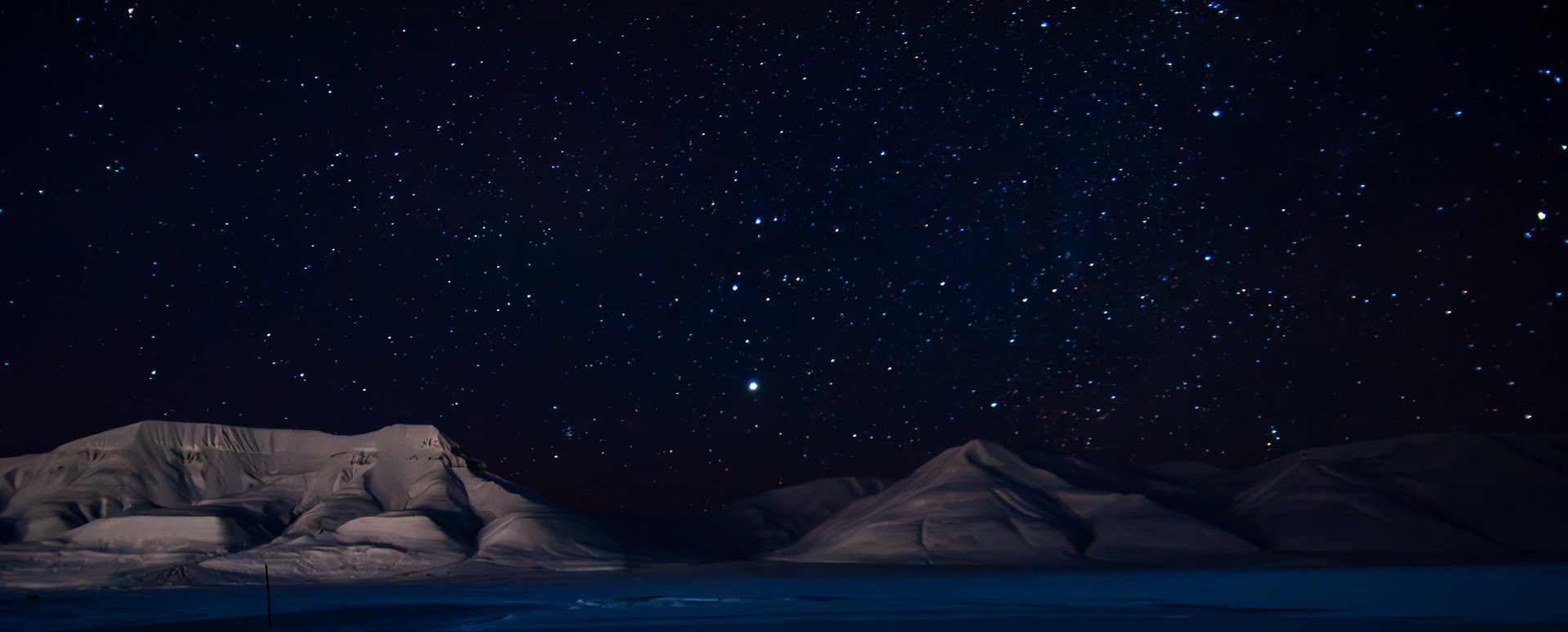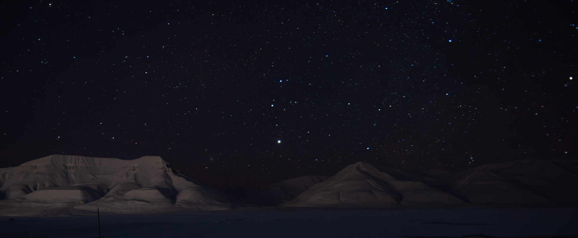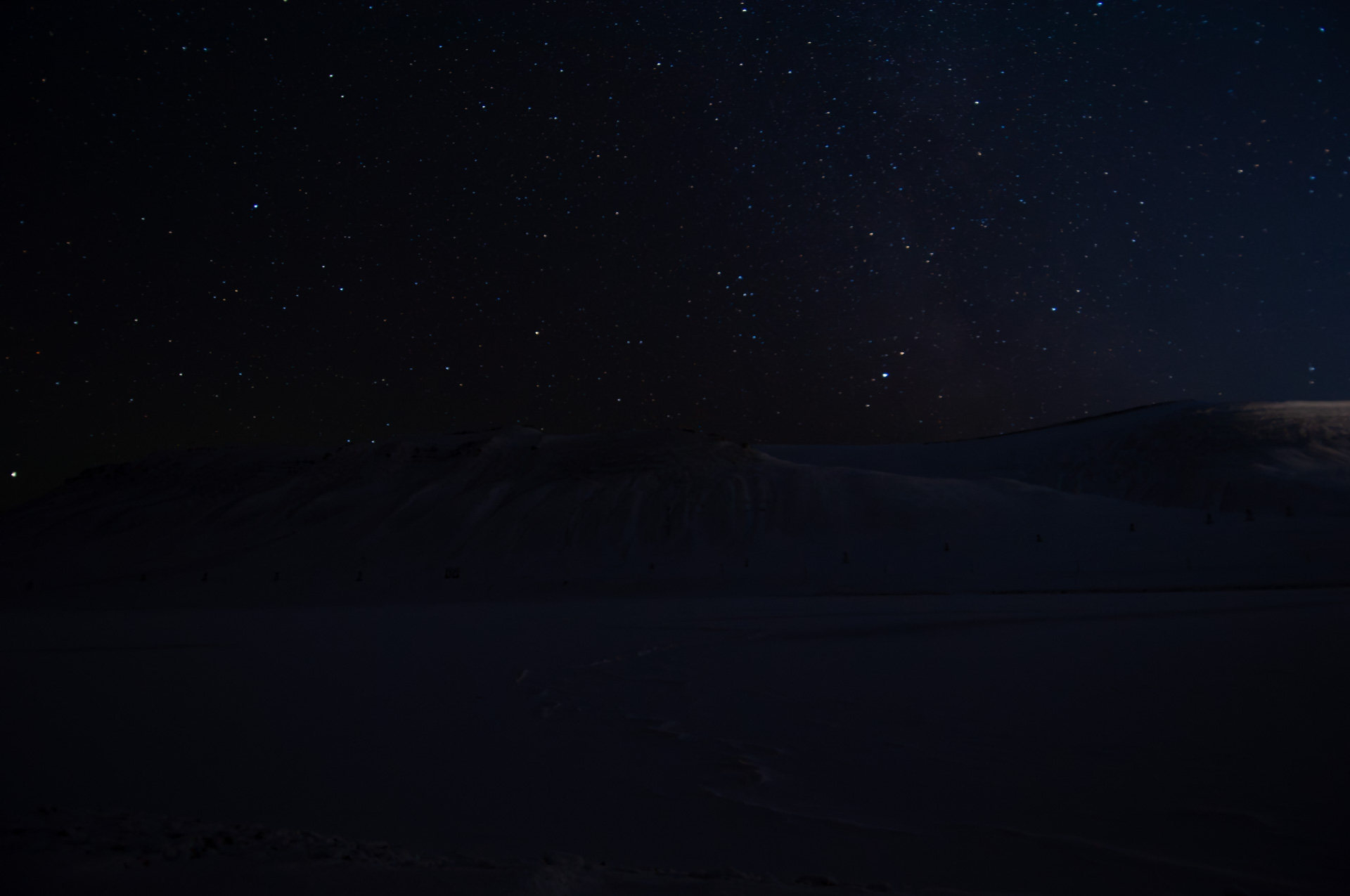 På kvelden tok jeg en solotur ut til Bjørndalen for å se om det var noe nordlys, noe det har vært de siste kveldene. Når jeg slo av alt lys så var det for mørkt og mye støy av sjøen til at jeg turte å sette opp kamerautstyret uten noen til å passe på. Turen gikk derfor i stedet til Adventdalen hvor det er stillere og forbikjørende biler i "ny og ne". Ikke noe nordlys, men stjerneklart, det var det.