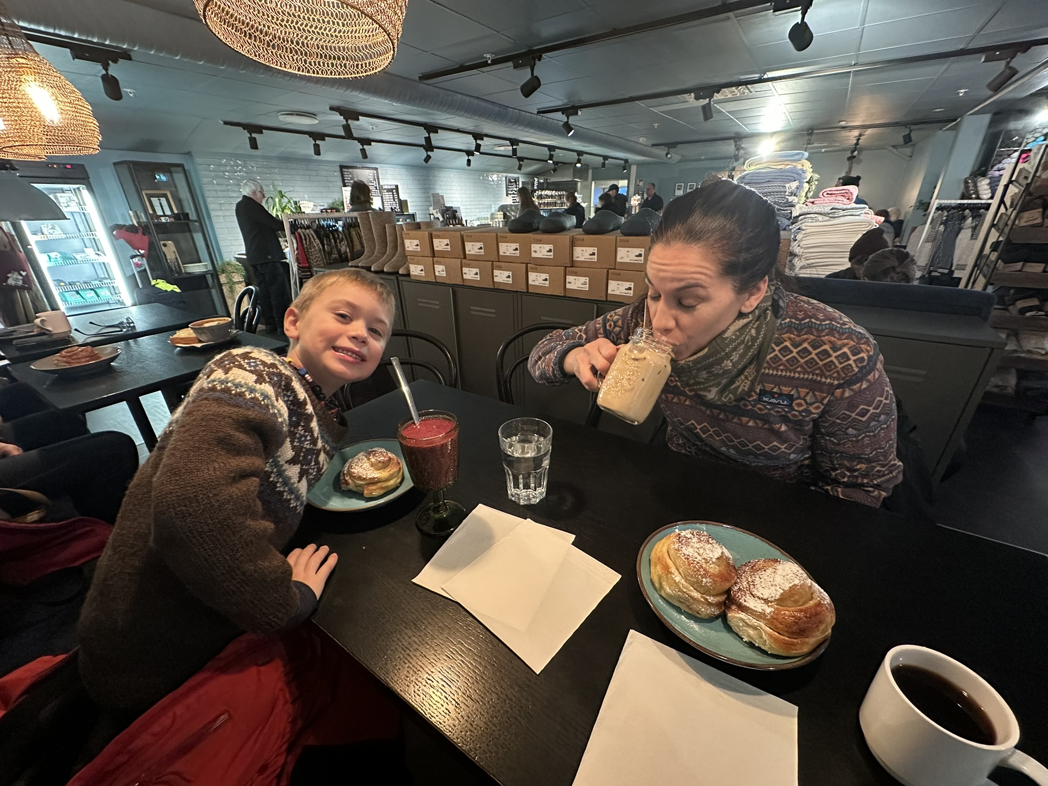 Lørdag hadde Isak en lang og fin prat med Gustaw som flyttet ned til Polen i sommer, han var redd for at han hadde glemt det norske språket, men etter en omvisning og demonstrasjon av leker så løsna det. Etter videosamtalen fra Warszawa var vi på bytur og shopping før vi fikk besøk av Alfred. Etter hvert kom Kristin og Iben også, med nystekte boller! Vi skulle egentlig spise taco, men det ble pizza fra Barentz i stedet.