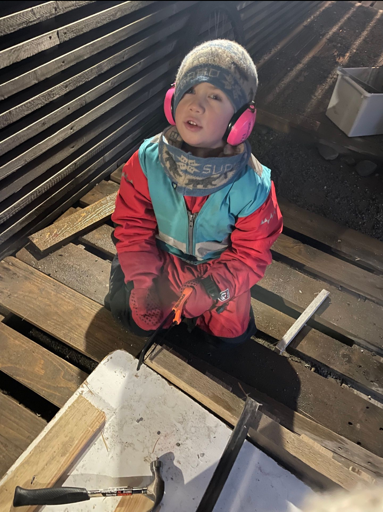 Isak og Even ble denne uka med til LNS for å hente materiale til snekkerboden de har laget i barnehagen. Her fikk de plukke fritt fra kappcontaineren.
