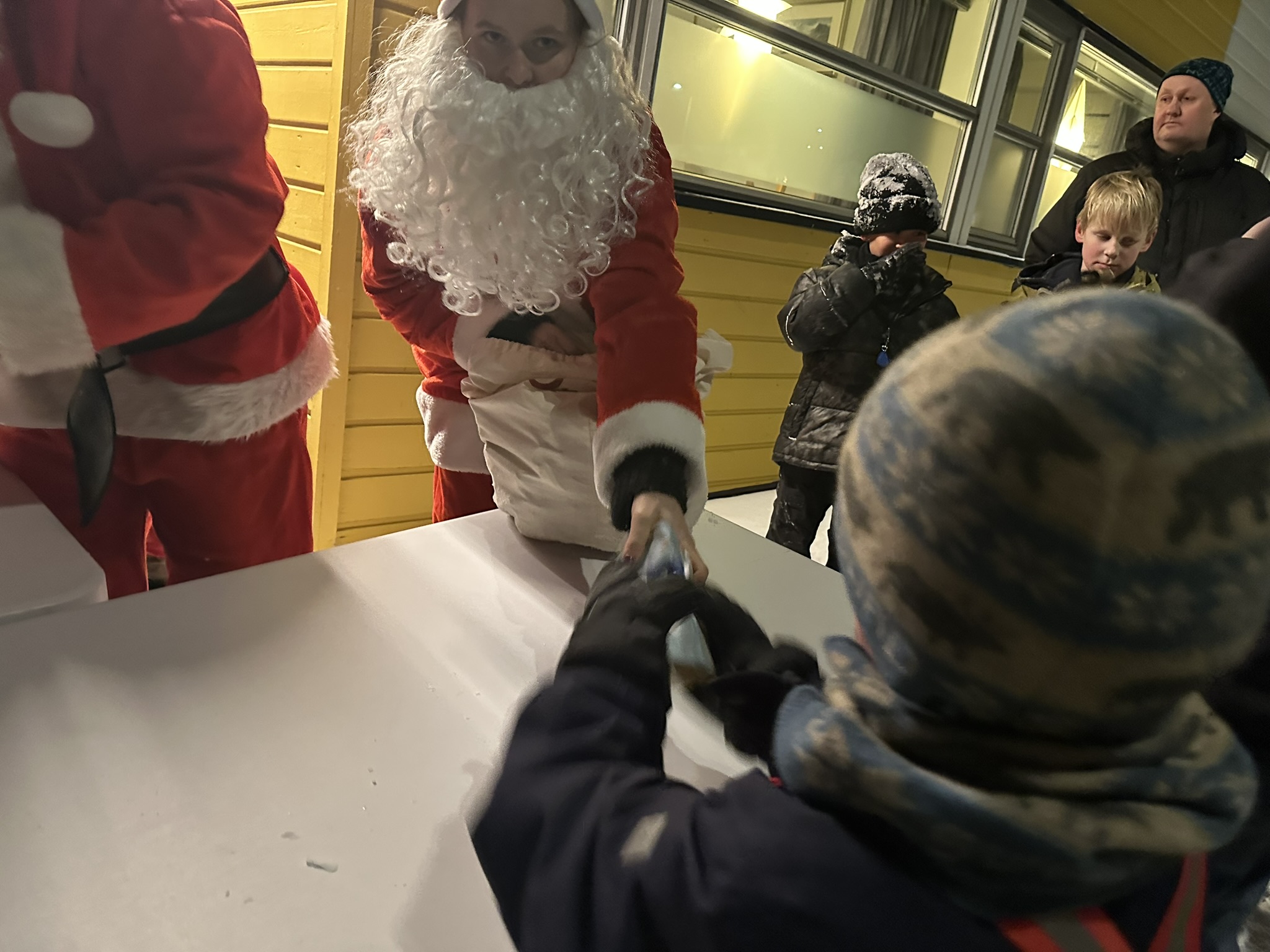 På torget ble vi møtt av hornmusikk. Blåserne sto inne i gangen på Lompen med mikrofoner, høyttalerne utenfor og ut mot torget. Det ble som i fjor veldig god stemning rundt juletreet før nissene kom med godteposer til barna. Jeg og Isak kjøpte med oss pizza hjem mens Hanne dro på yoga i hallen.
