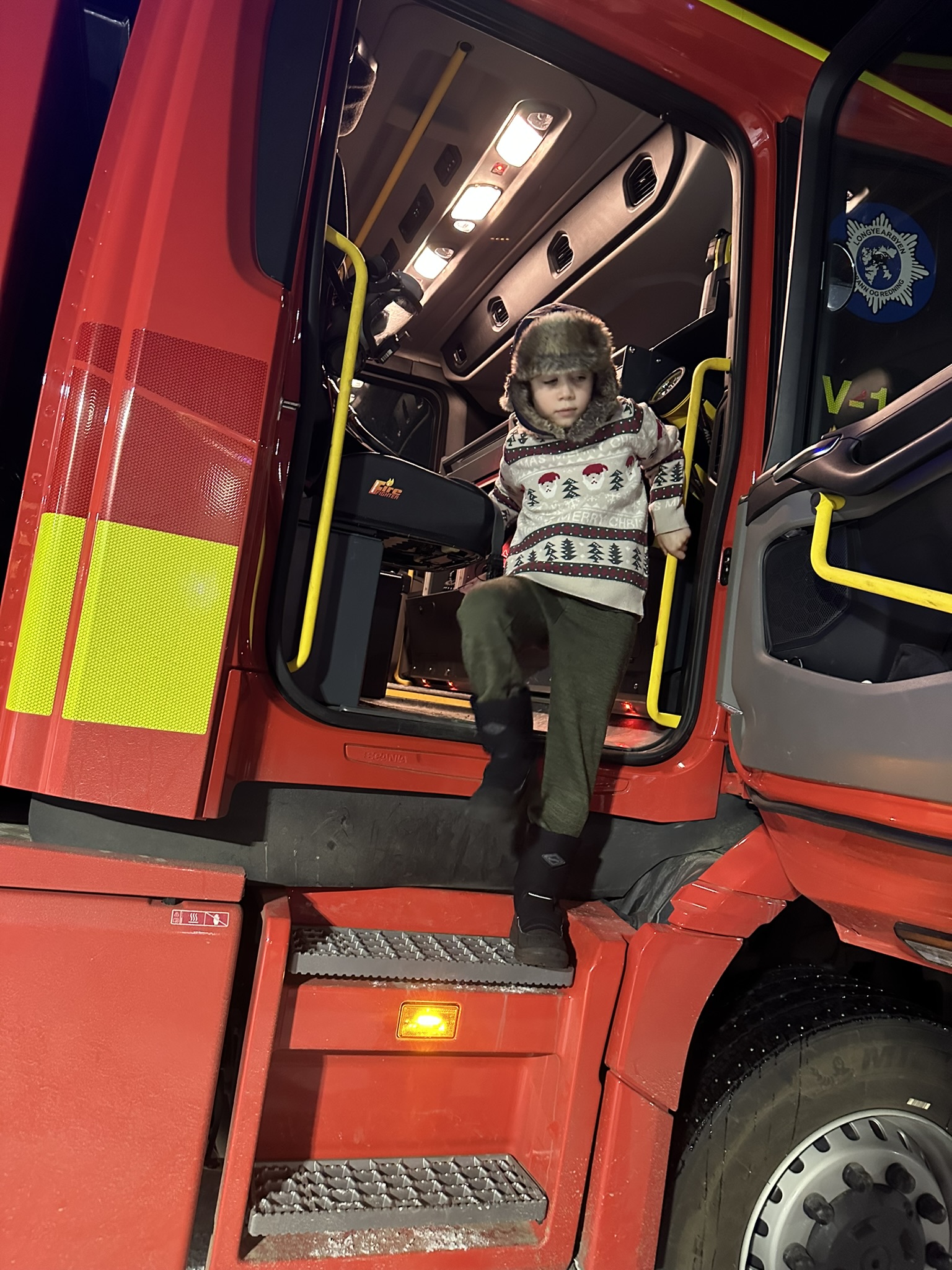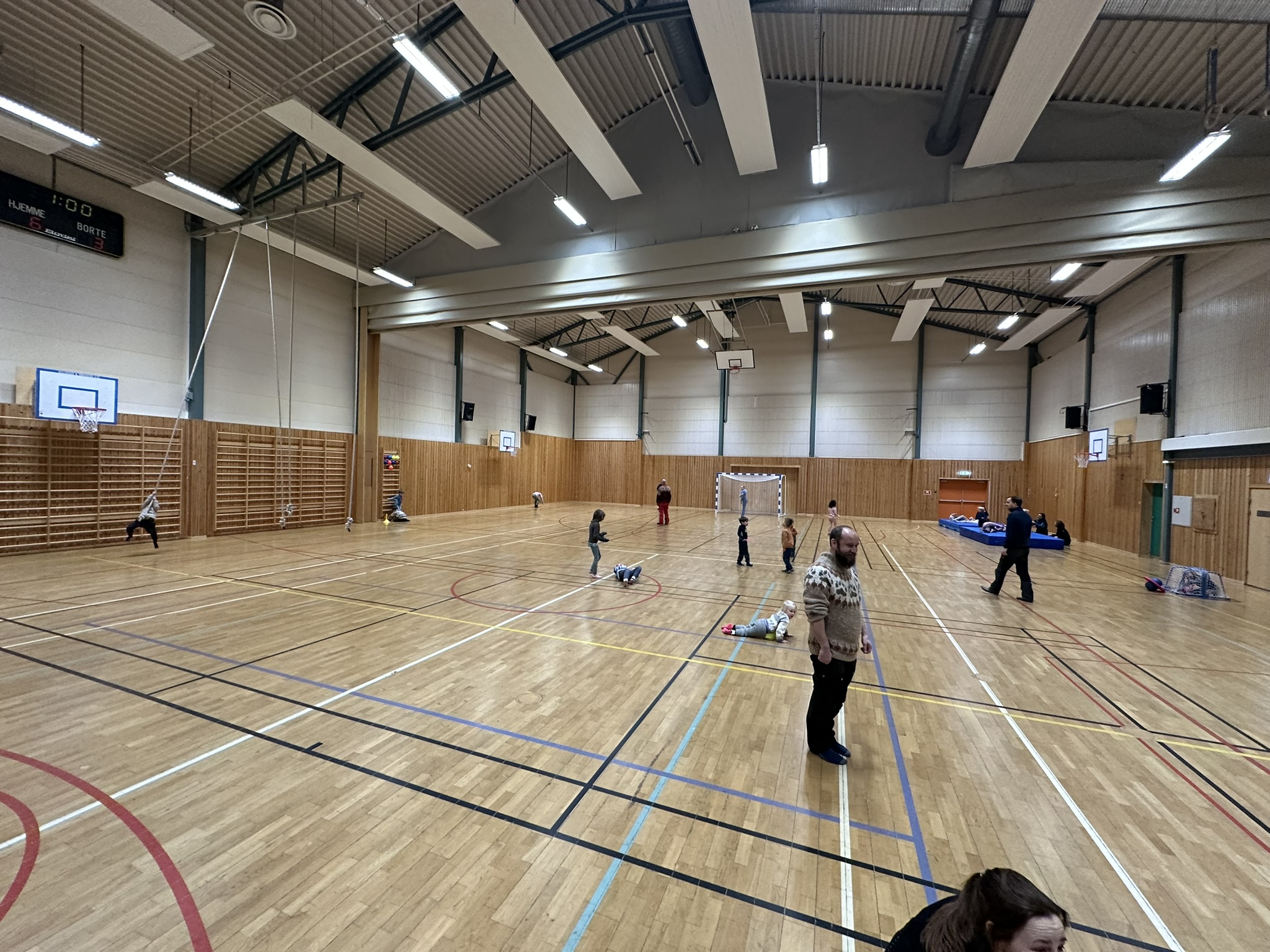 Tilbake i idrettshallen ble det medalje, en lite premie og pepperkaker. Hallen ble åpnet til stor begeistring. En pappa hadde brannvakt, da er det jo bare å hente brannbilen da, og sette på lysene utenfor idrettshallen. Fin måte å få halle barna ut av hallen for opprydding.