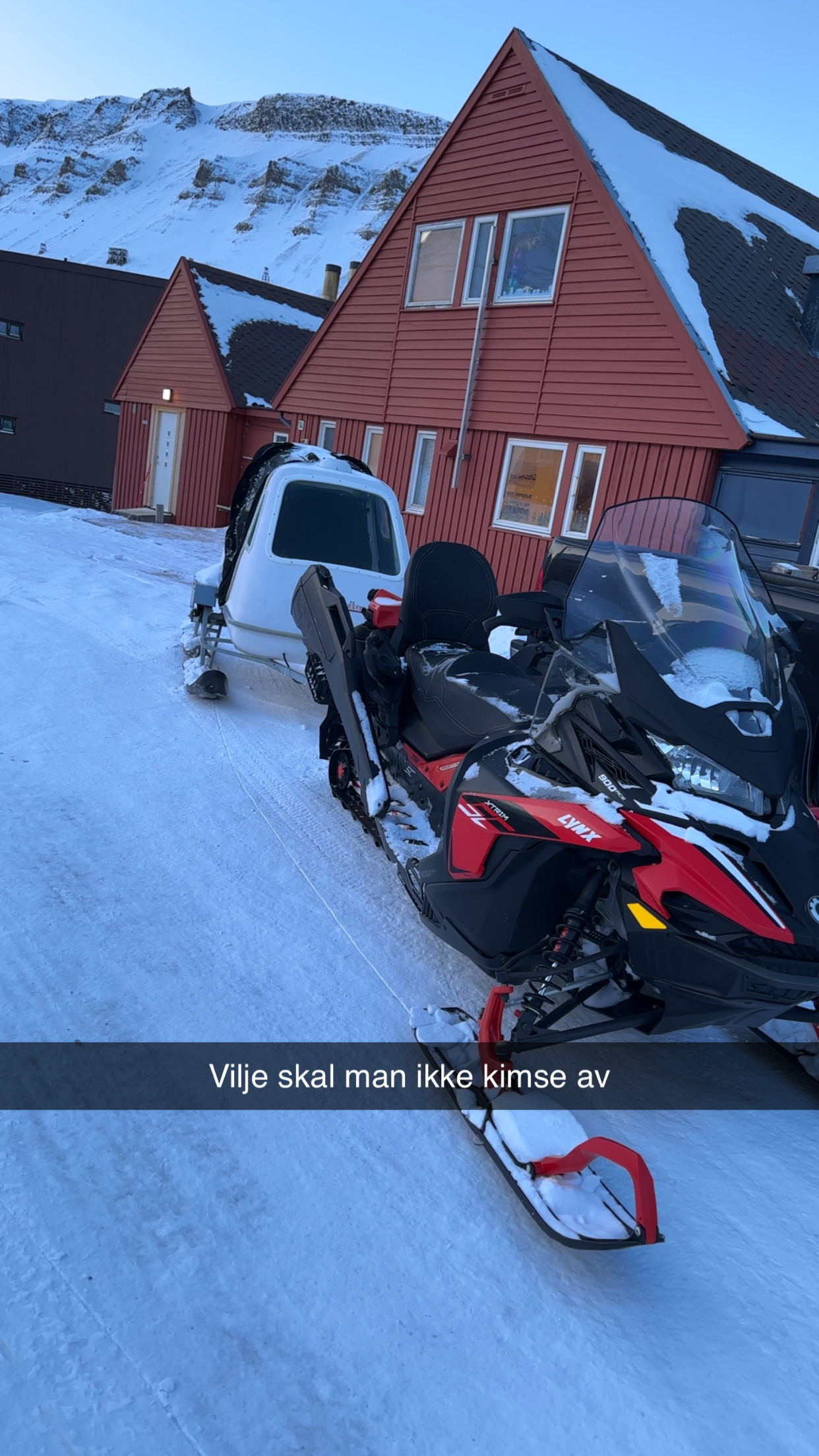 Lørdag bestemte vi oss får å ta oss en kort testtur med scootere og utstyr. Det viste seg at sluffa hadde fryst fast i bakken. Etter en liten time med velvalgte ord(og lettelse i antrekk) kom den endelig løs. Kan ikke skylde på noen andre enn undertegnede, plana var å sette den på paller i løpet av sommeren. Planer kan gå i vasken, det gjorde denne. Vasken ja, på morgenen våkna vi til fryst vann. Som nevnt i fjor så har vi heldigvis patent på å få tint det selv. Det involverer en gammel whiskeyflaske, vannkoker og grytekluter. Great success. Skulle også ha hatt en patent på å få opp varmen på badet, med denne kulden og vindretning er det rundt 10 grader der inne. Da er det kaldt å komme ut av dusjen.