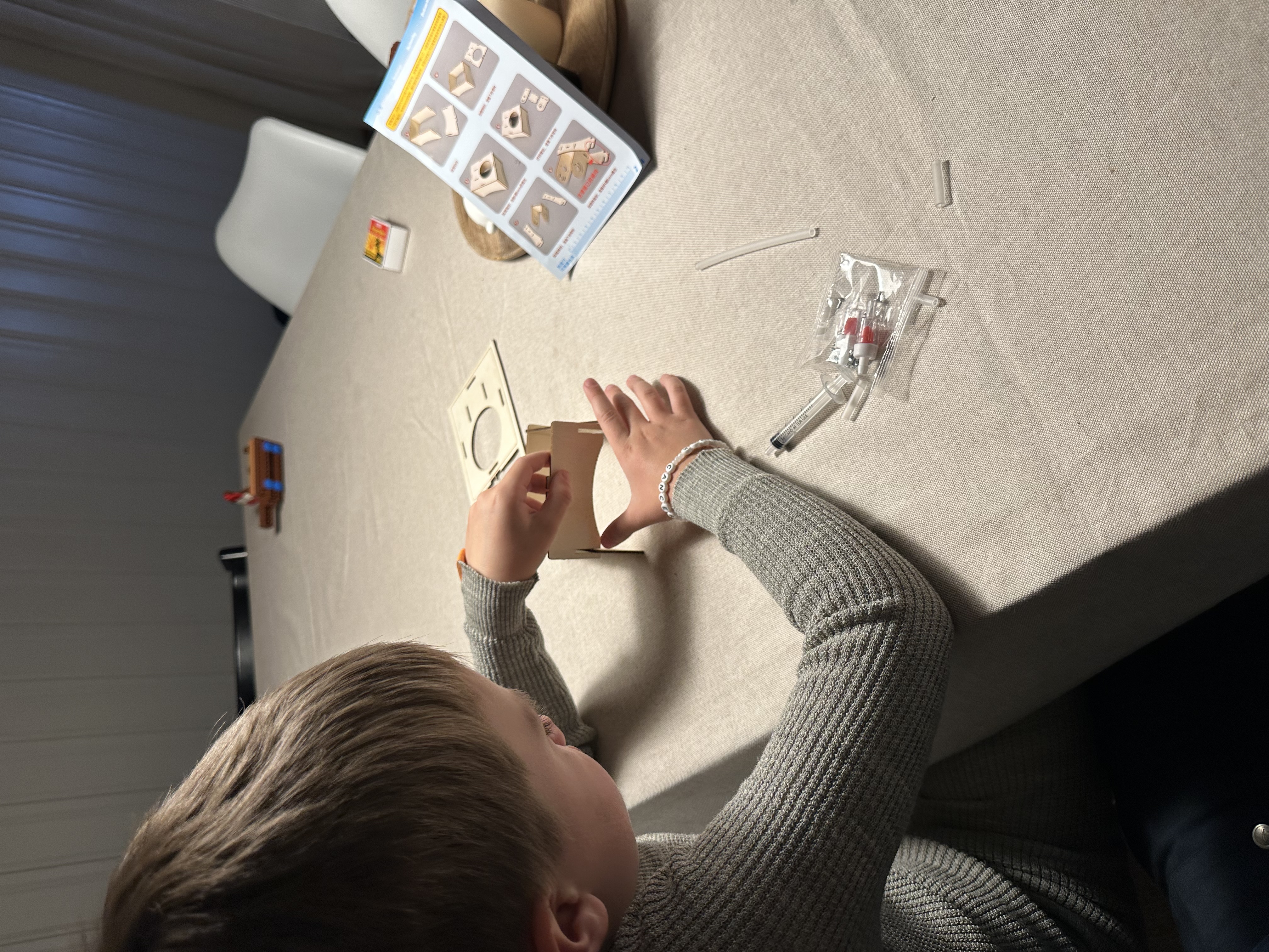 Tilbake til turen, jeg fikk ikke start på webastoen i sluffa uten at det ble brukt mange minuttene på feilsøking, det var for kaldt. Men uansett kjekt å få testa kjøring med sluffa, jeg og Isak satte på nye ski i sommer. Nede ved SSU(fast pit stop) møtte vi Kathinka fra kontoret mitt. Etter en liten fotoshoot kjørte ut vi til Hiorthhamn, mens min kollega skulle til Fritham. Plana var å kose seg med litt varm kakao borte ved Hoirthfjellet, men det var bitende kaldt. Hanne og Isak gjorde et forsøk på å sitte i sluffa, men det ble raskt bestemt at vi måtte dra hjem. Isak satt i sluffa på vei tilbake. Når Isak hadde fått igjen varmen bygga vi første Temu-byggesett, en vannpumpe.