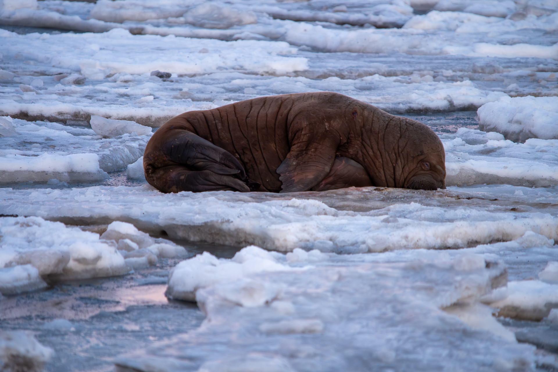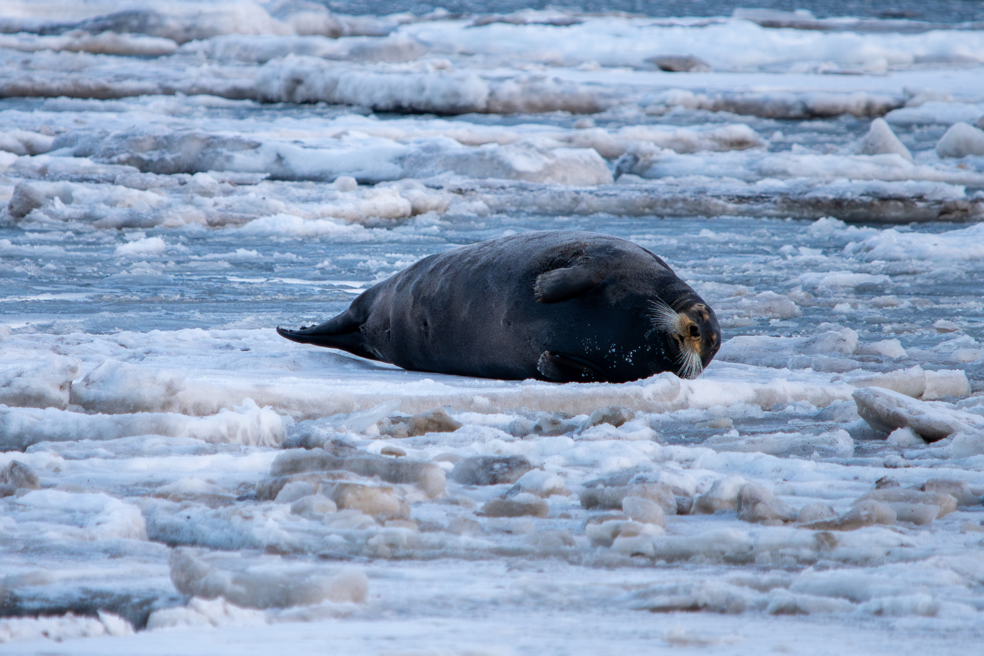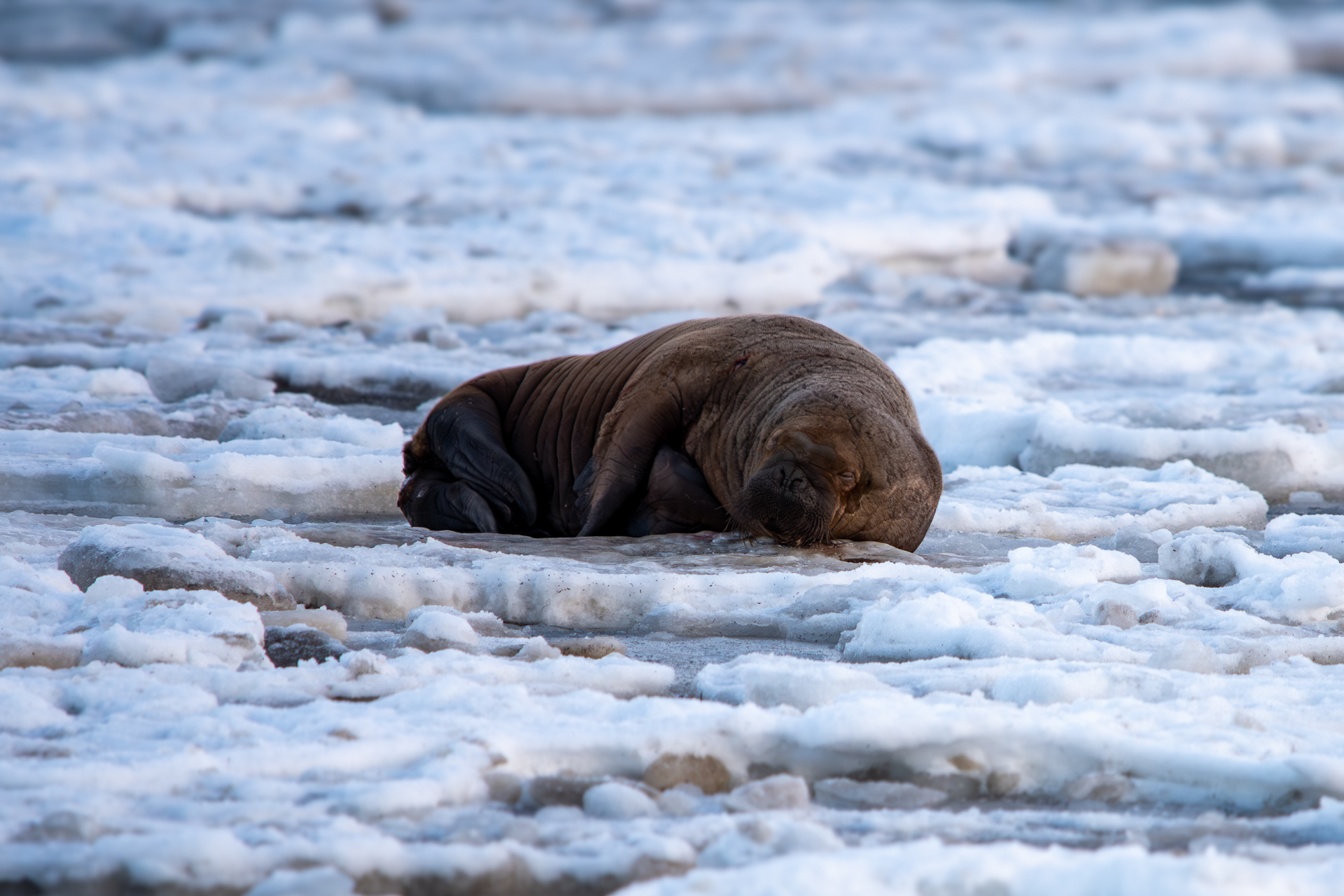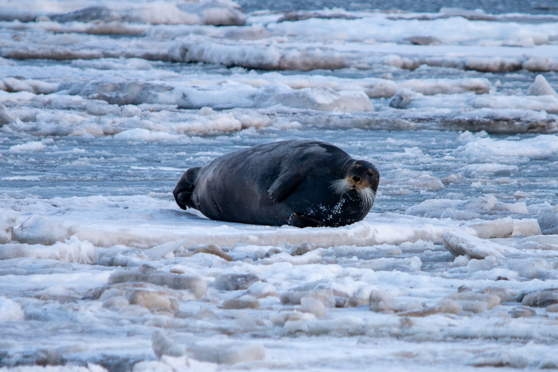 Under forrige søndags tur i fjæra glemte vi ei lue og et par votter ute på Hotellneset. På tirsdag når Hanne og Isak var på svømmetrening kjørte jeg utover for å hente de. Vi hadde jo som sagt hørt rykter om at det var hvalross i området, jeg tok derfor med kamera. Det fikk jeg bruk for. Det var både hvalross og sel som hvilte på isflak der ute. Mens beluga/hvithvalen svømte forbi. Hvalrossen uten en eneste bekymring. Selen var mer på vakt. Som isbjørndelikatesse nummer 1, så skjønner jeg den. Etter svømmetreninga ble Isak og Hanne med ut for å se også. Isak ikke like ivrig som før.