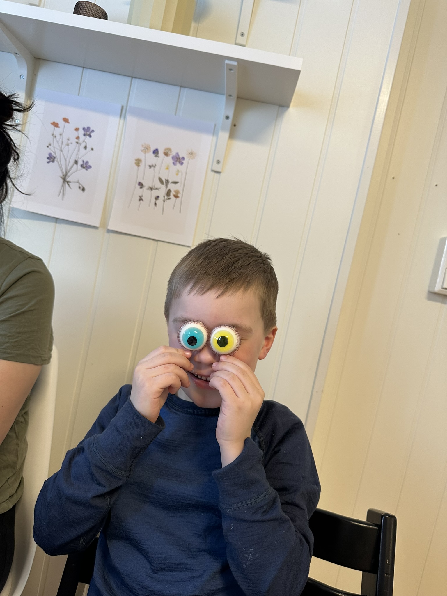 Nordbjørn var et døgn forsinket pga. stormen, den måtte legge seg i ly rundt Bjørnøya et lite døgn. Derfor var pakken med min postordre fra Smistadgrenda Lager&Konfekt noe forsinket. Det er jo noe nostalgisk med det å gå på postkontoret å hente pakker, hvor til og med postsjefen kjenner deg. Også føles det jo som julaften. Noen overraskelser var det i pakken, blant annet fikk Isak seg nye øyne, spiselige øyne.