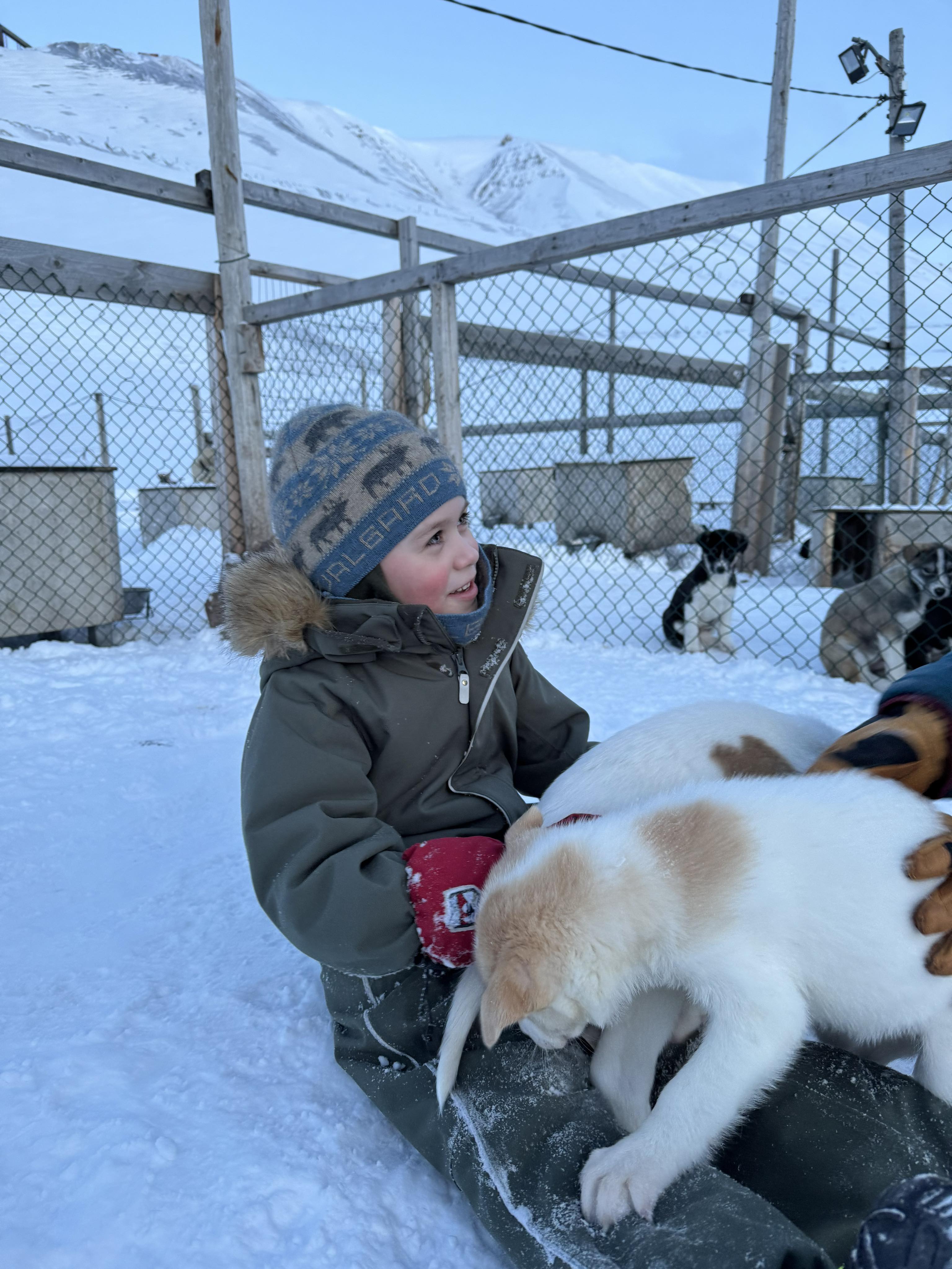 Isak ble på mandag bedd med til Basecamp sin hundegård av naboen(Alfred), det ble sein kveld, men det var verdt det. Han hadde mye å fortelle når han kom hjem. Isak har kanskje vært litt skeptisk til hunder, og holder som oftest litt avstand, men det løsna nok litt denne kvelden.