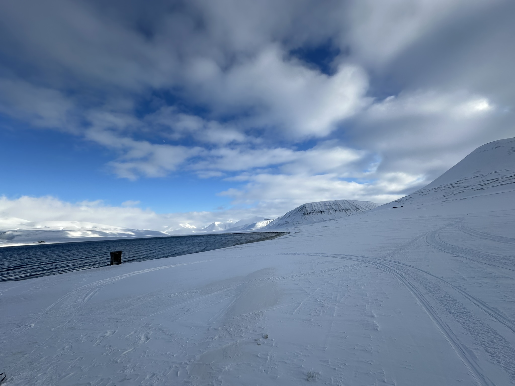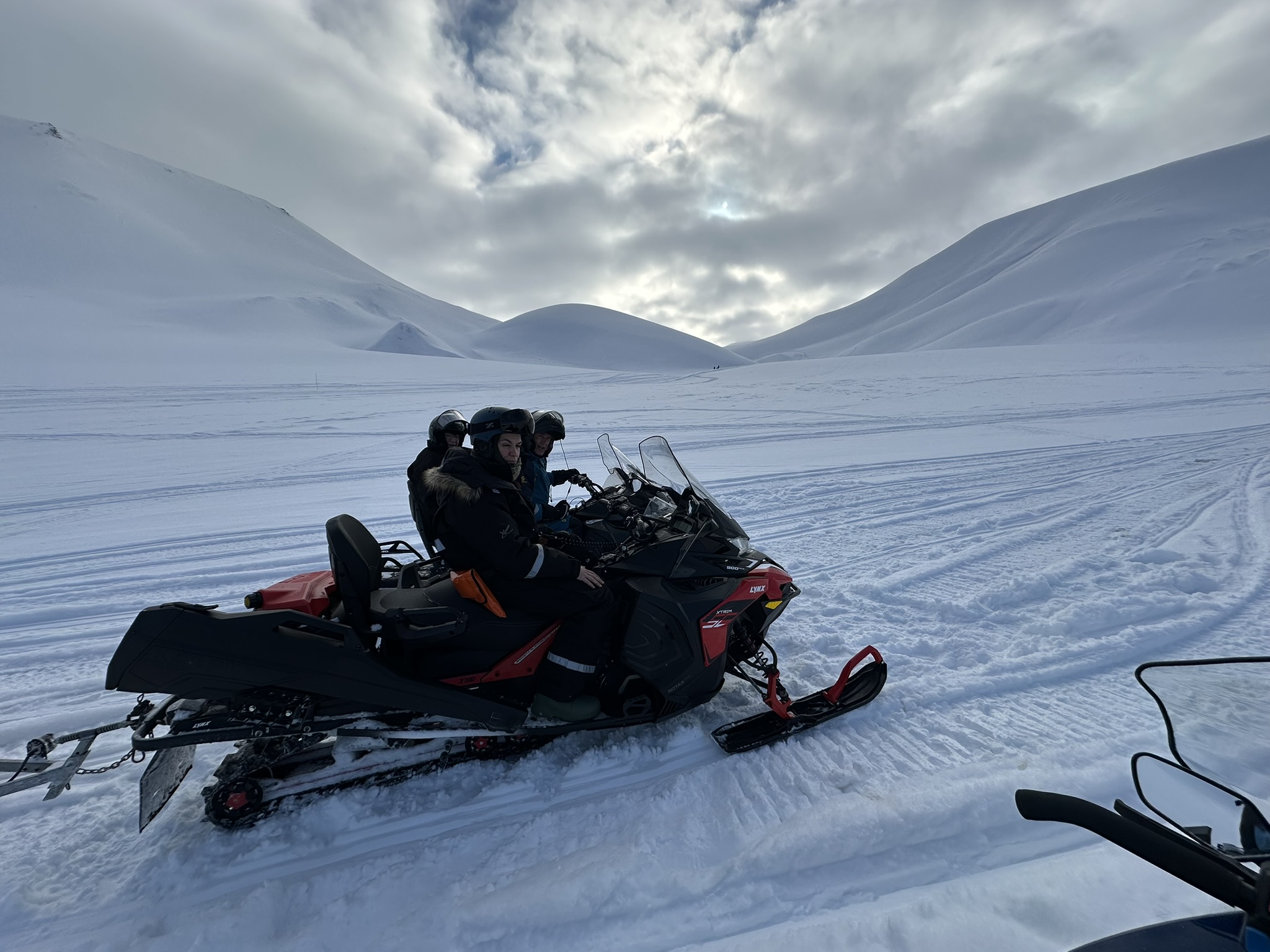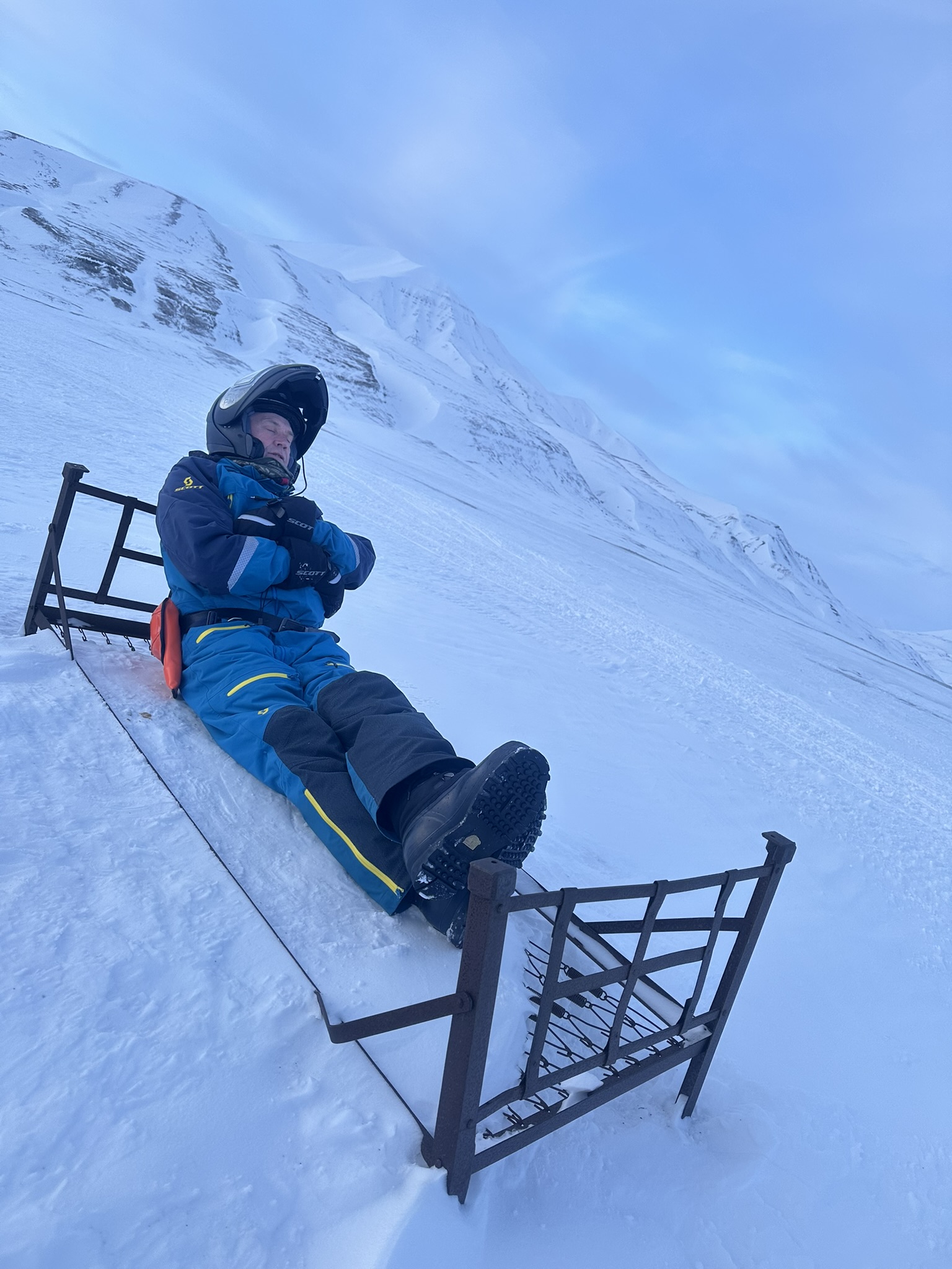 På vei hjem så følte undertegnede seg såpass sikker på veien tilbake så kjørte på feelingen, ikke før vi kom til Fardalsbakken merka den innebydge GPS'en at vi hadde feil kurs, eller, kjørt feil dal.. Man kan kjøre opp og over Longyearbreen for å komme hjem. Men bakken er bratt og litt risikabel med tung last. Også morena nedover kan være utfordrende med sluffe på slep. Sammen tok vi en demokratisk avgjørelse om å snu og kjøre Fardalen ned igjen. Offisielt var det guiding, men i realiteten en 1,4 mil omvei. Til mitt forsvar var det første gang i området. Kjører uansett på GPS'en neste gang.