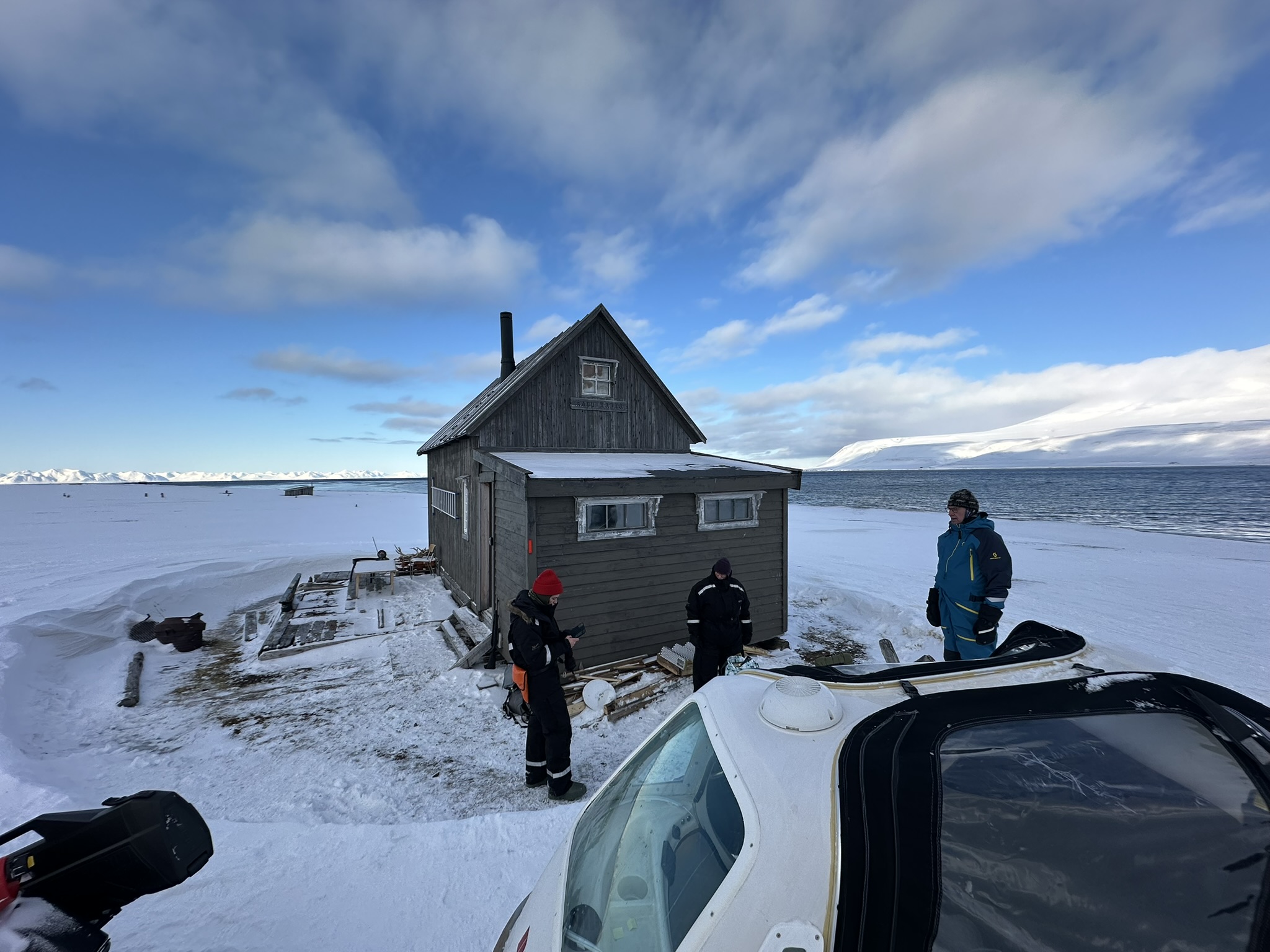I dag var vi på en lengre tur til Kapp Laila. Det ble 9 mil på scooteren i veldig fint vær. Litt kjølig fra Colesdalen, og da var jo sluffa grei å ha med. Vi kan ikke kjøre like fort, men Isak koser seg der inne i varmen. Han sovna til og med. I rute mot Colesbukta stoppa vi på Fritham. På hytta Kapp Laila 1 visste vi at det var kjentfolk denne helga, men de var forduftet. Det er jo kun satellitt-kommunikasjon tilgjengelig der ute så er ikke bare å sende en snap liksom. Trodde de var på tur, så vi la igjen spor(non-stop på trappa). Ikke før vi kom hjem fant vi ut at kjentfolket som leide hytta hadde reist, det blir non-stop på ukjentfolk da.