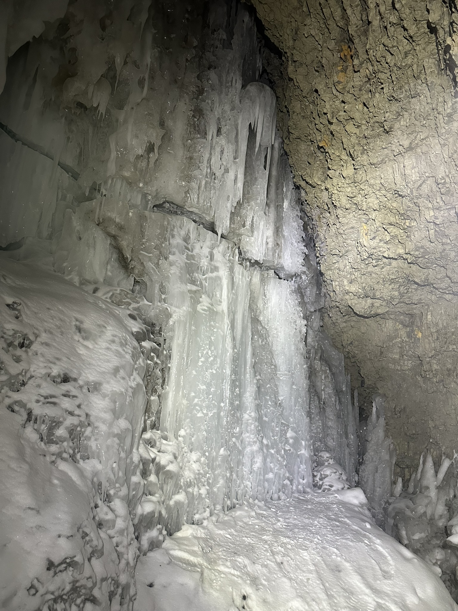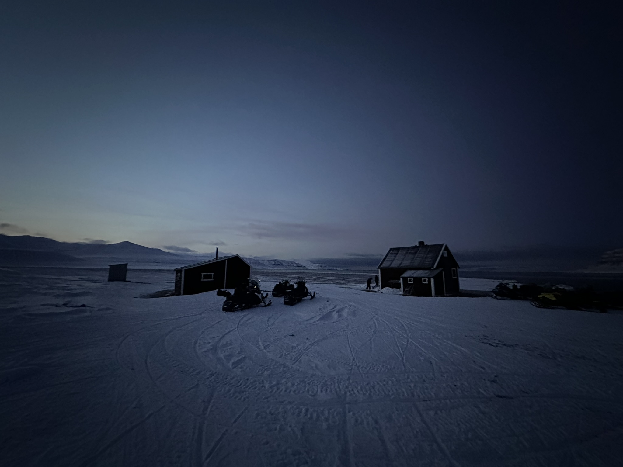 Isbjørnvakt med andre ord. For meg så var det her en gylden mulighet for å lære av noen som har vært ute en polarnatt før. Turen gikk først til Eskerfossen, en fryst foss i Eskerdalen, et par mil nordøst for Longyearbyen. Her fikk følget en pause, anledning til å kunne gå bak den fryste fossen. Noen ble litt for kalde til å fortsette turen og dro tilbake til byen sammen med en av guidene. Jeg ble med videre til Fredheim, en gammel nedlagt fangststasjon, tilhørende den legendariske fangstmannen Hilmar Nøis. Det var en helt fantastisk fin tur, med masse fint lys, det ble 11 mil på scooteren fra morgen til ettermiddag. Har også hørt rykter om at ansiktet mitt har havnet på Instagram. Jeg har ikke fått i gang redigeringsriggen enda, så videoene blir nok litt kjedelige. Det blir bedre :)