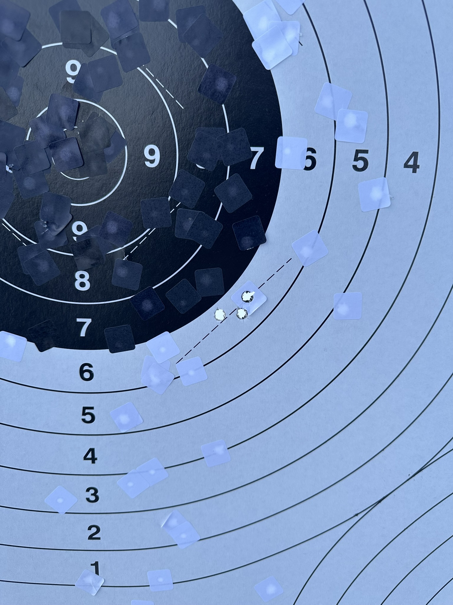 Vi har kjøpt alt for mye egg på tilbud så vi laga verdens største omelett lørdag morgen. Etter frokost dro jeg på skytebanen sammen med gode kolleger for å teste rifla. Siktet hadde løsnet så sist traff jeg ikke skiva en gang, kulene/mantel er sikkert ute i Isfjorden en plass. Jeg tenker vedlagte samling er godt nok knestående på 50m. Må bare sikte litt opp og til venstre om det skulle være nødvendig.