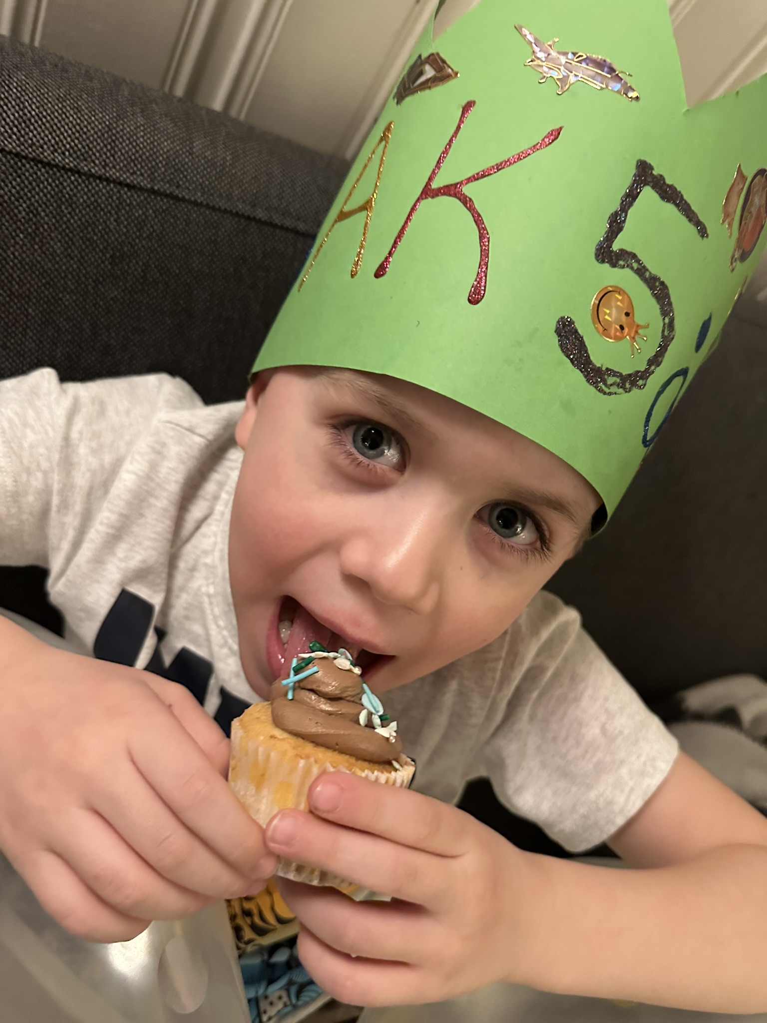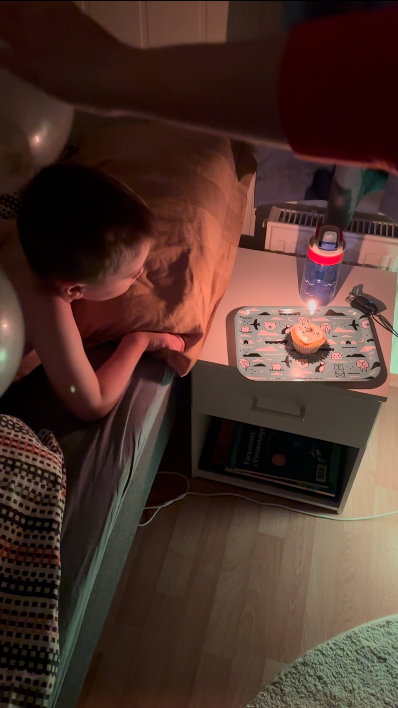 I dag dedikerer vi bokstavene til Isak. Siden han i dag fylte 5 år så er det på sin plass. Bursdager er akkurat like spennende her oppe, som på fastlandet. Om vi ser bort fra Isak sin aller første da. Da var pandemireglene på sitt strengeste. Legger med et minne fra det.