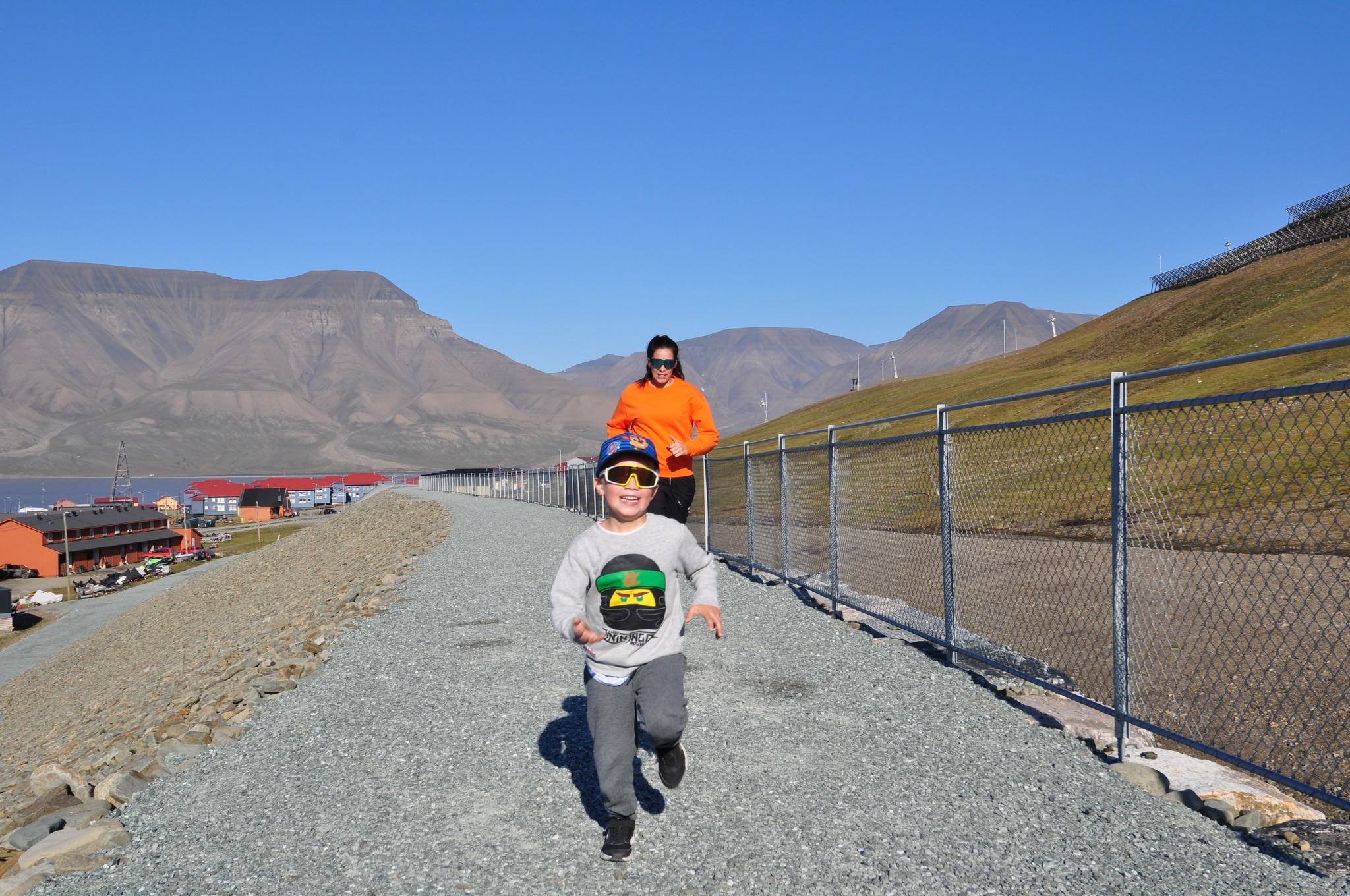 Fint vær etter hvert i dag, 18 grader og sol. Tok oss derfor en gåtur i nabolaget. Vi gleder oss til å få tak i noe isbjørnbeskyttelse(våpen) sånn at vi får bevegd oss utenfor bygrensa. Prøvde den nye linsa, ikke optimal for OL-grena "100 meter familie", men blir veldig fin når vi kommer oss ut på tur.