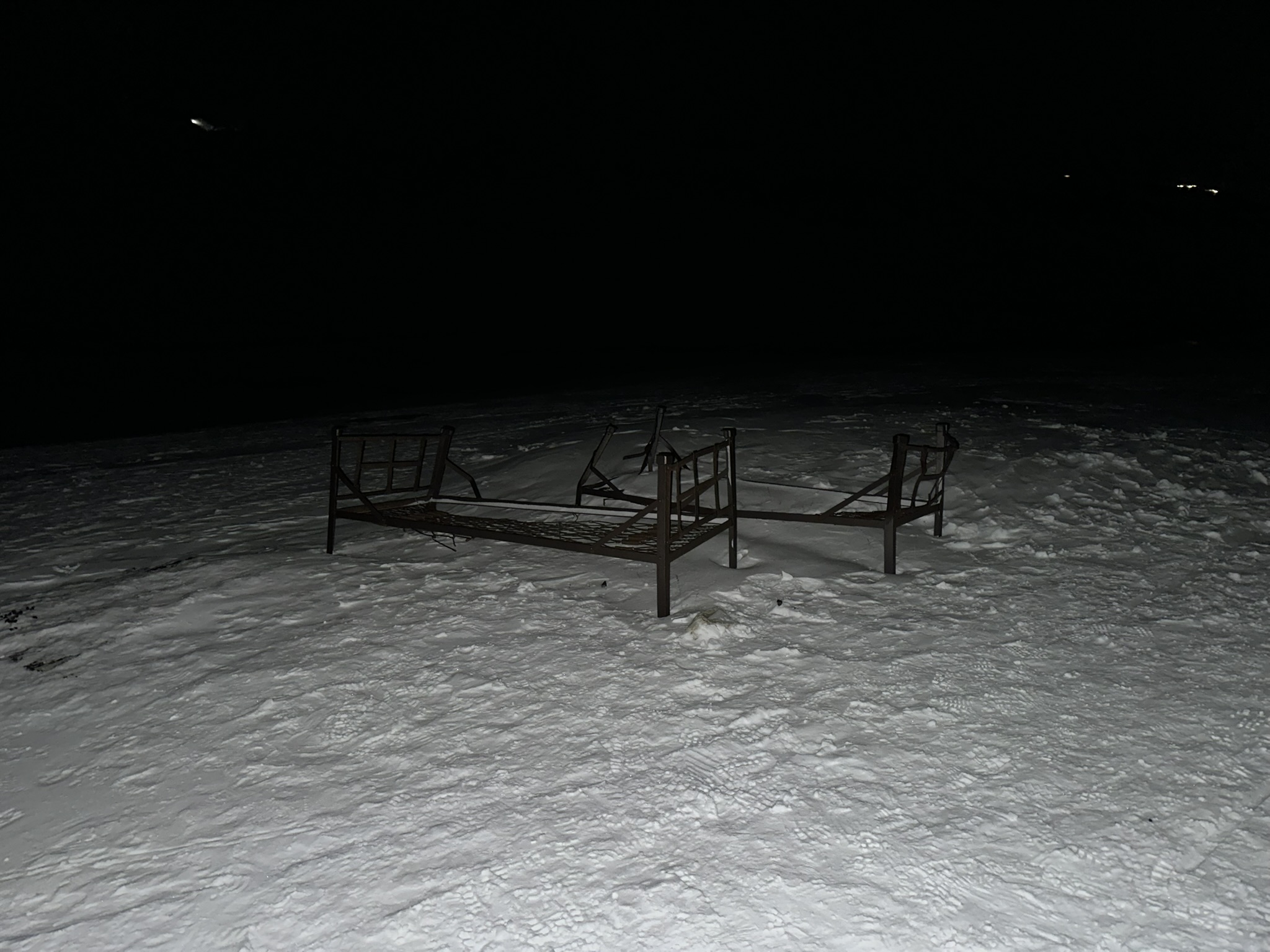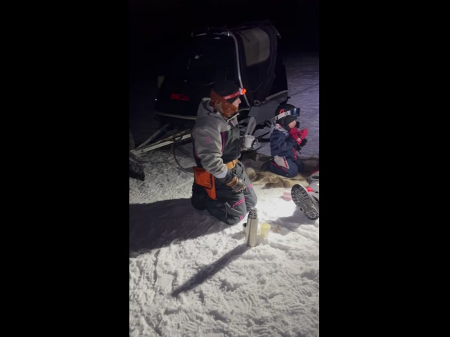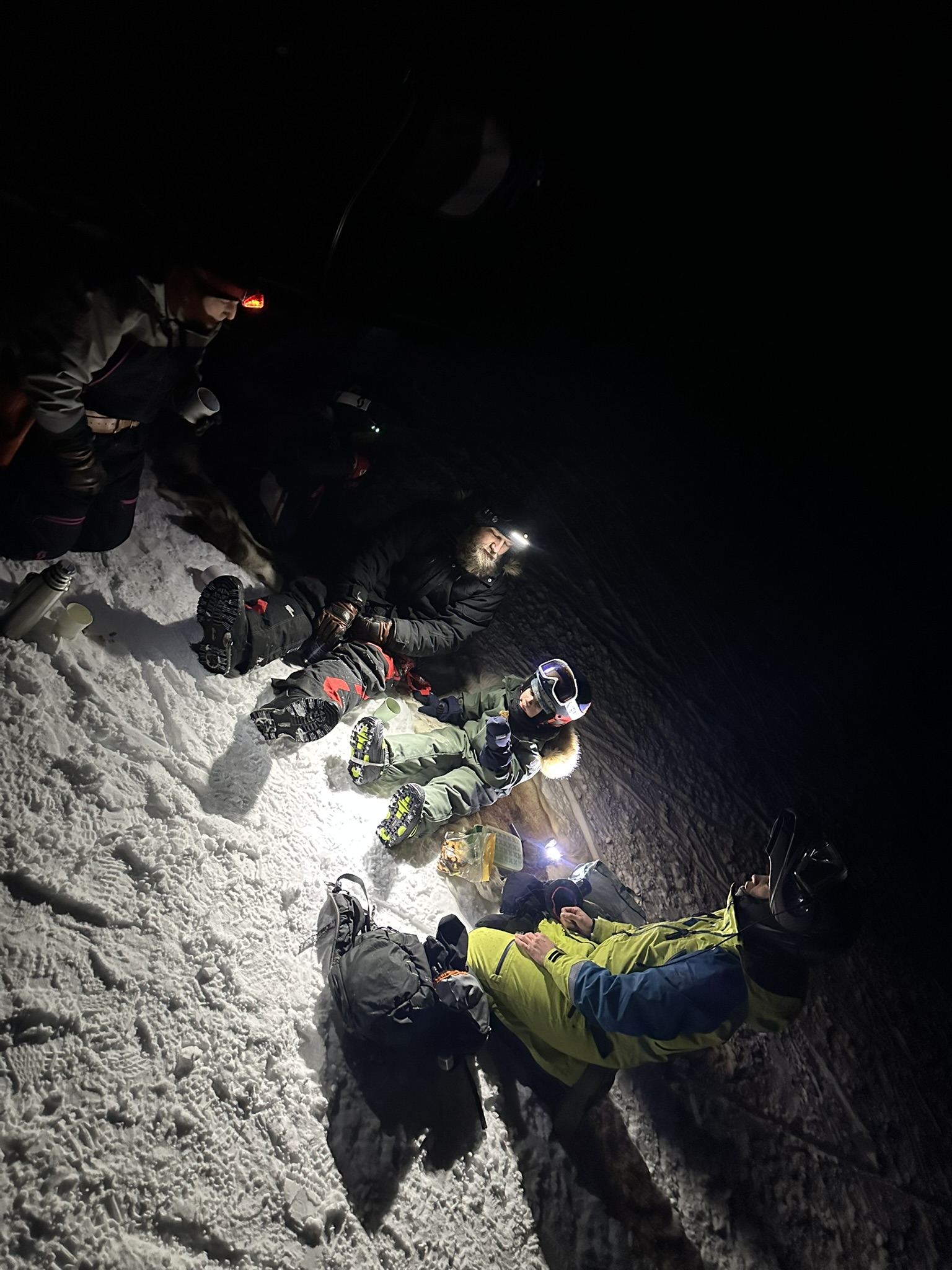 Vel framme til jernsenga stoppa vi scootere og det blir helt stille. Og bekmørkt da. Ordna med litt hodelykter og satte oss på reinsdyrskinn for kakao, pepperkaker og marsipansjokolade :)