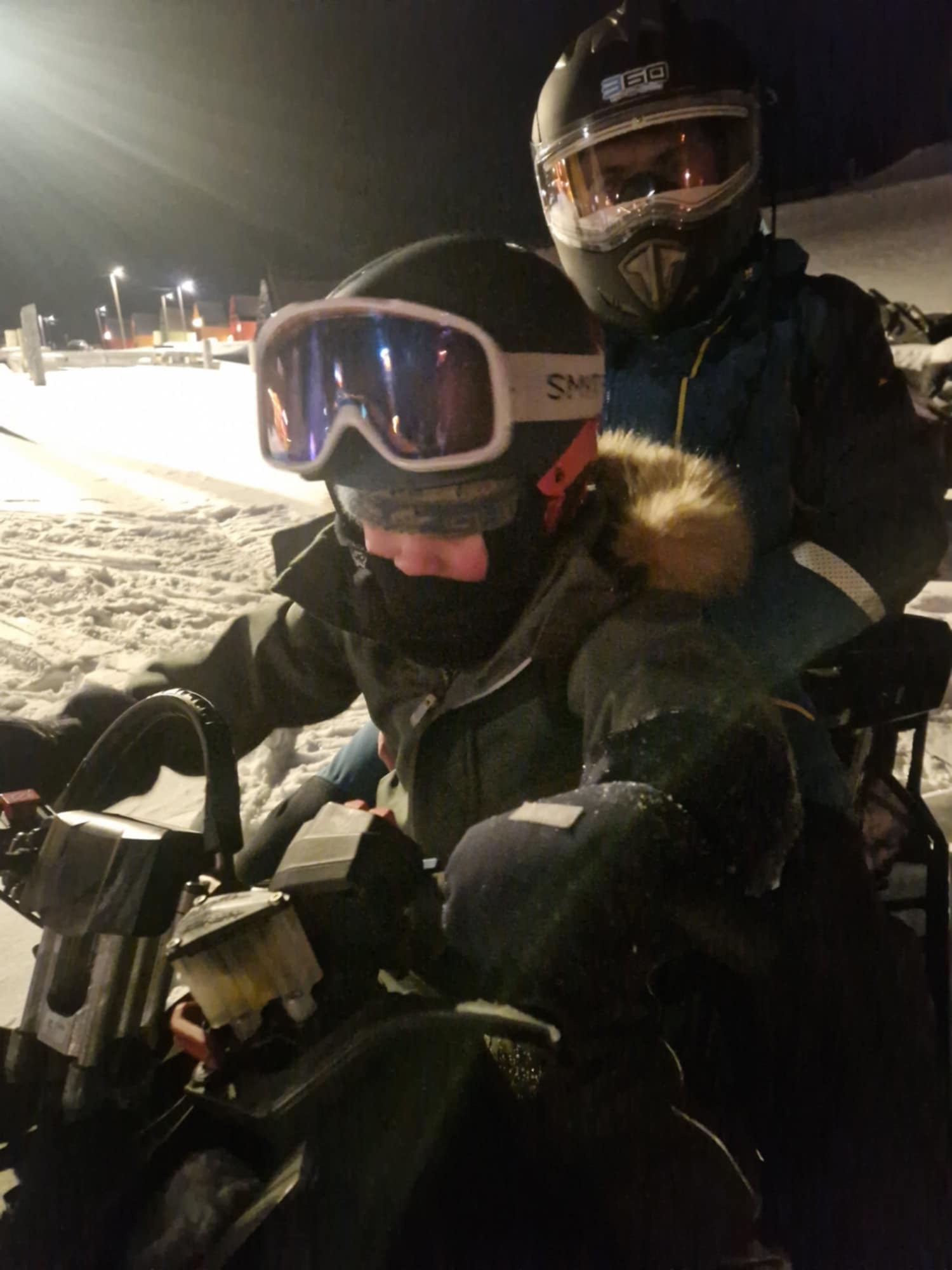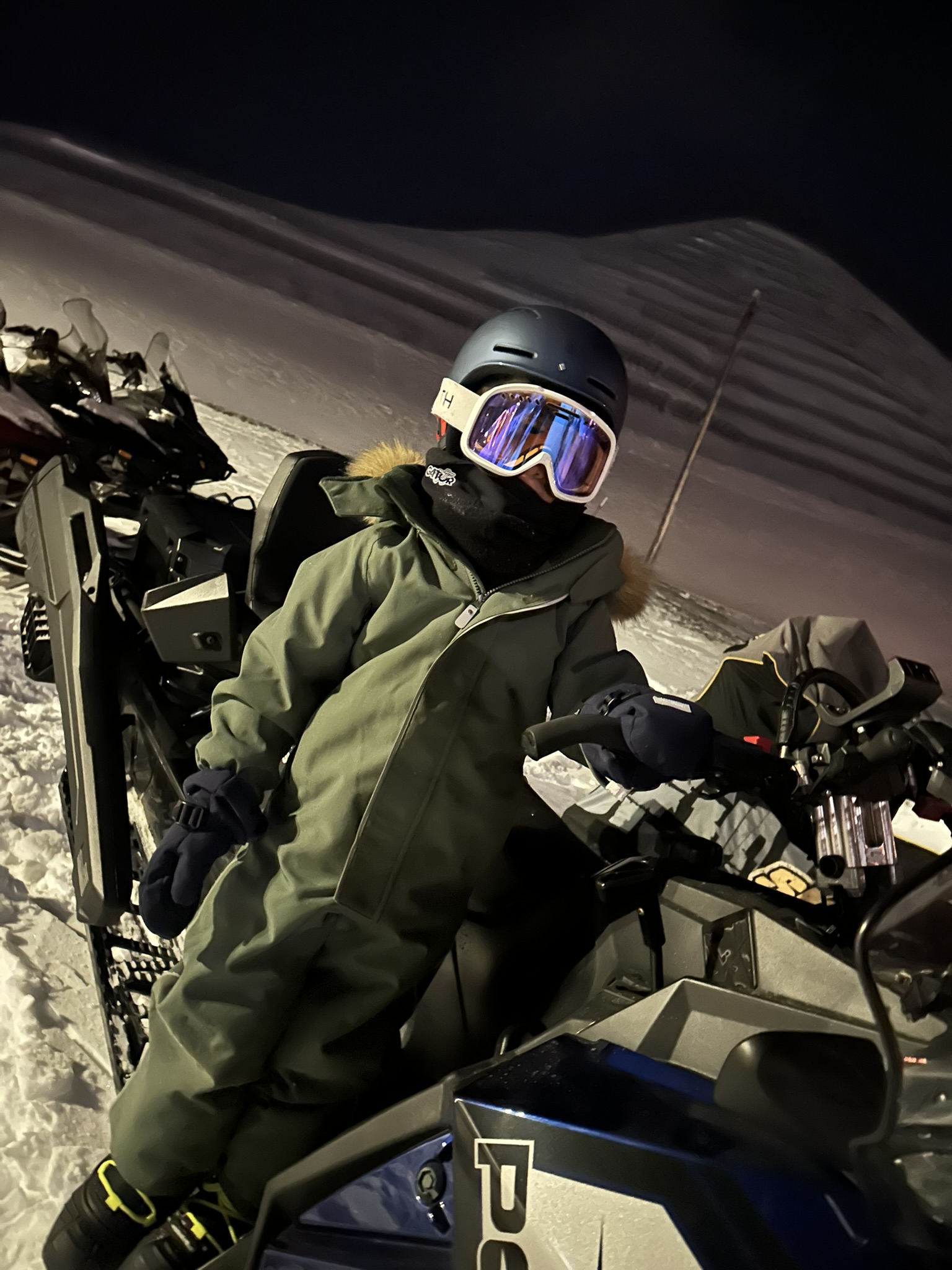 Noen bilder fra vår aller første scootertur på Svalbard. Vi kjørte 4 scootere i kolonne, Isak satt bak meg. Jeg merka fort at jeg ikke hadde kontroll på om han fortsatt satt på når vi kjørte. Han sa det gikk fint, og det gjorde det sikkert. Men vi stoppa så han kunne sette seg foran meg i stedet, da kunne vi gi neeesten full gass.