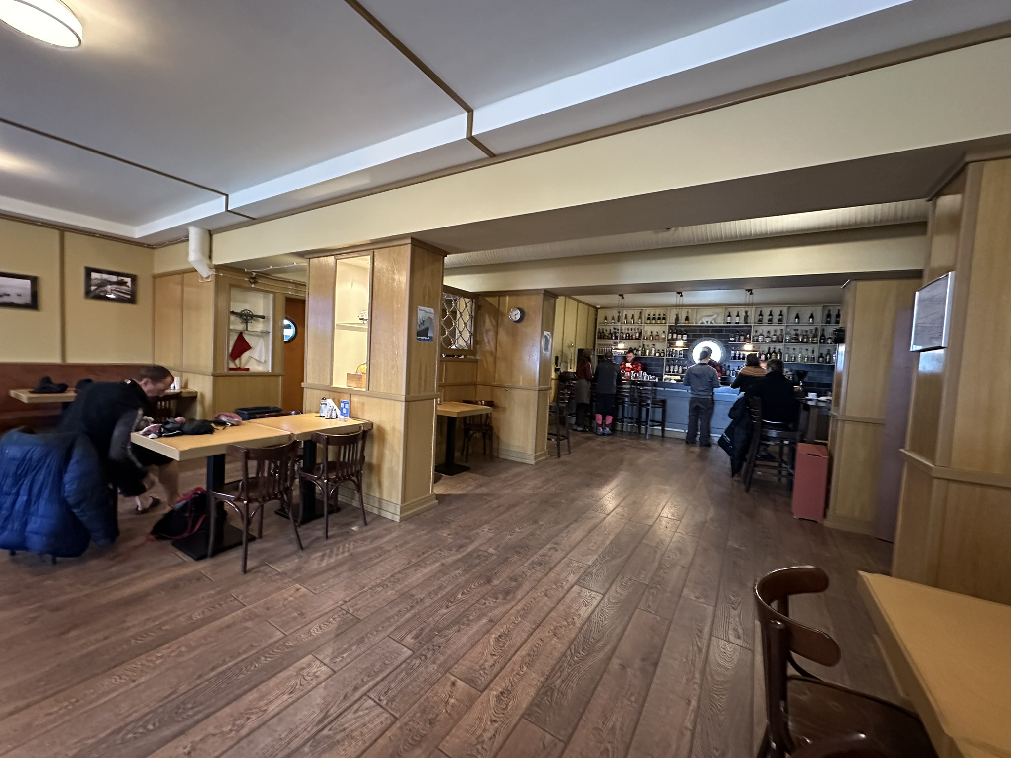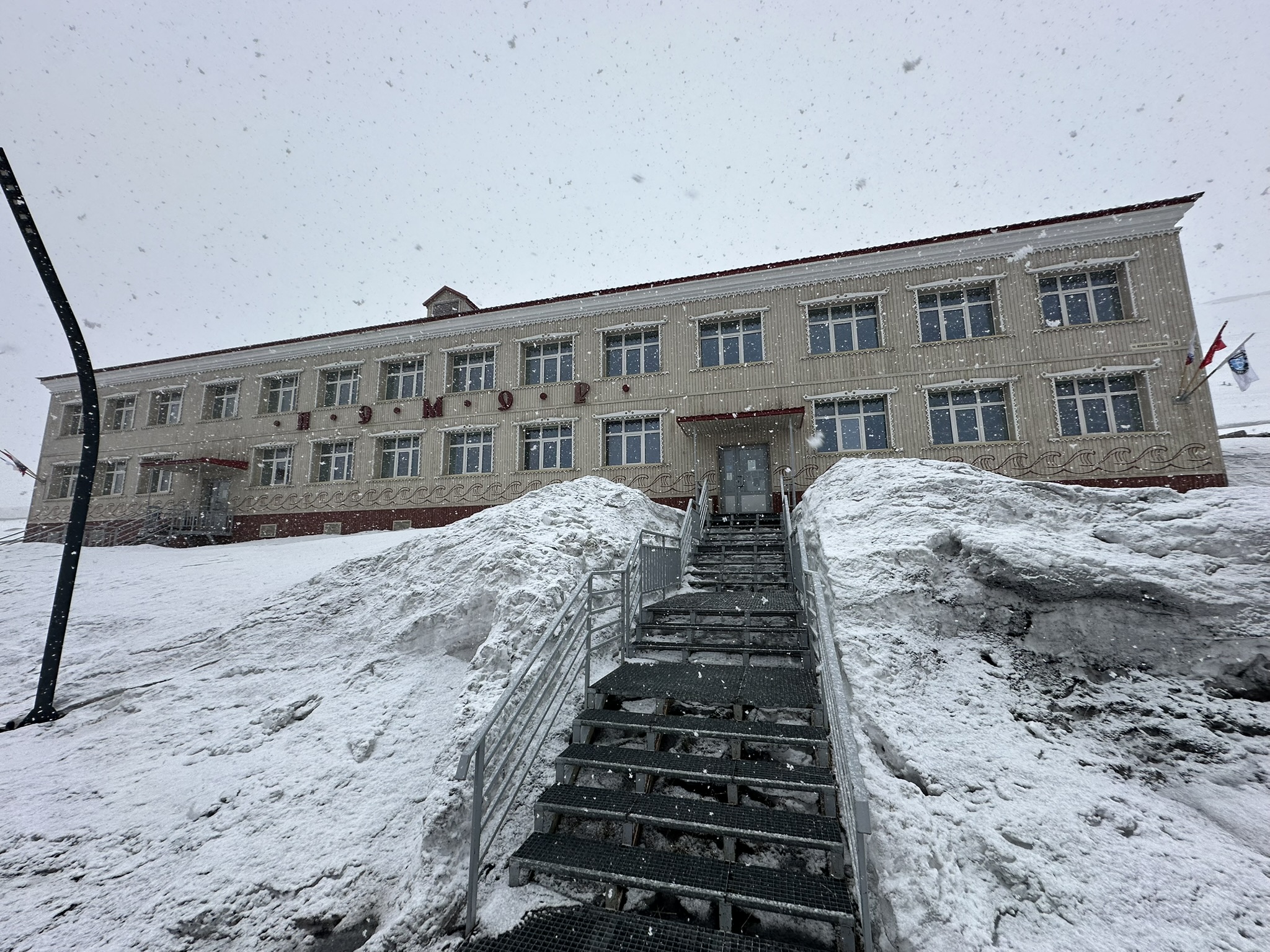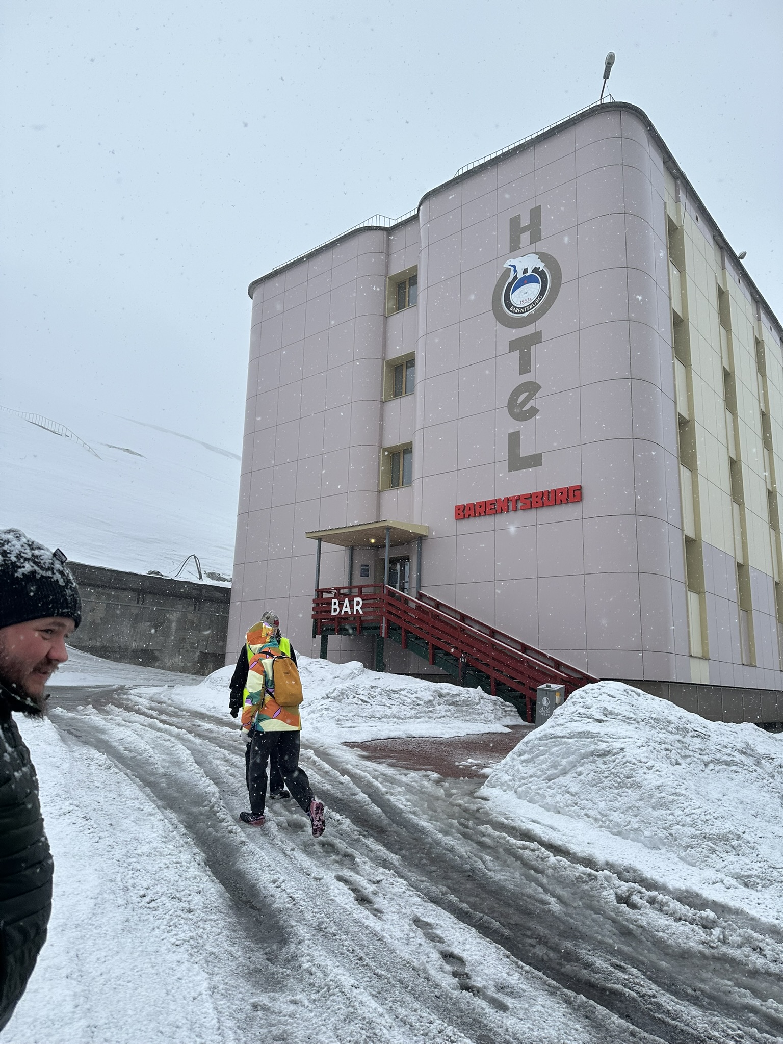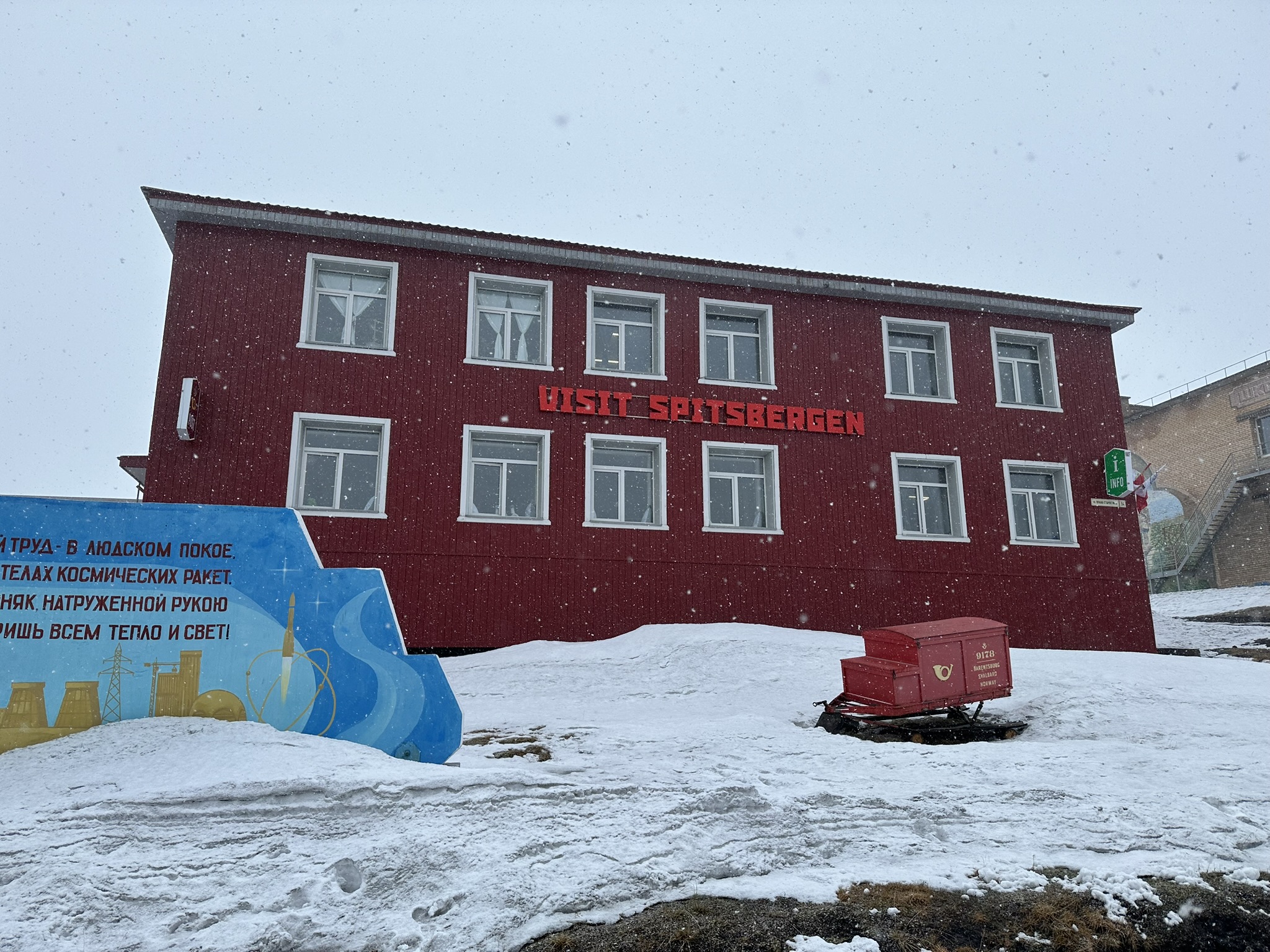 Vel fremme på havna i Barentsburg. Vi starter med å gå ca. 300 trappetrinn fra kaia og opp til hovedgata. Stairway to Sovjet. Her er det første du legger merke til det store kultursenteret. Her har de kulturhus, bibliotek og treningsrom. Skulle visst nok være en diskokule der inne også. Storsalen har plass til flere enn det bor i Barentsburg.