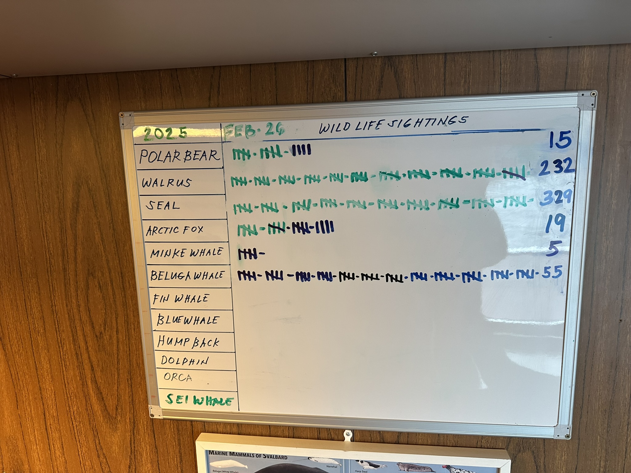 08:30 ble vi plukka opp av buss, forkledd som hotellgjester. Vi ja, ikke bussen. Kjørte ned til havna for å gå ombord i Billefjord, vi kasta seil og heiste loss for å seile over Isfjorden til Ymerbukta og Esmarkbreen.