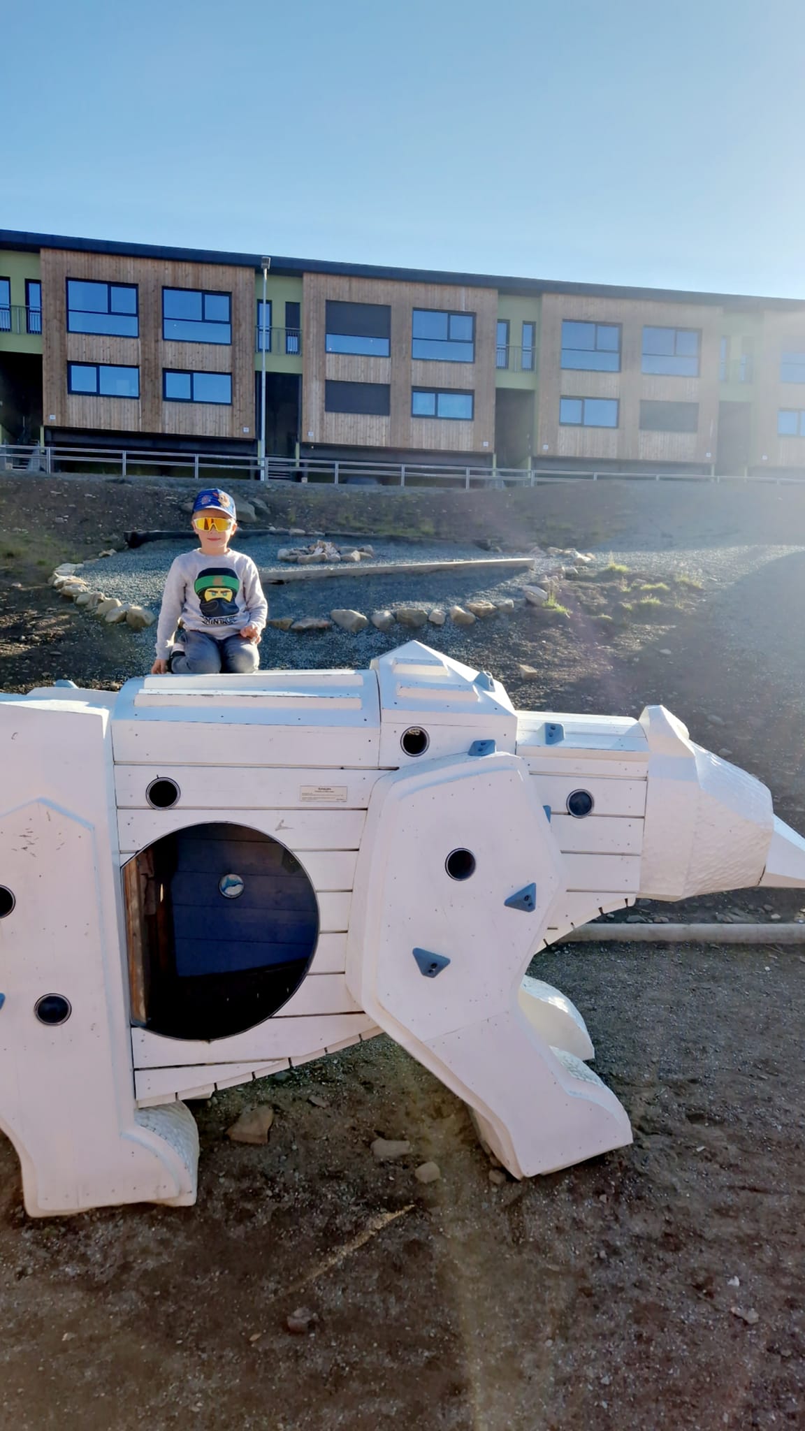 I dag har det vært 20 grader her 78 grader nord. Hanne og Isak har kosa seg ute, jeg har prøvd å komme i gang igjen på kontoret… inne.