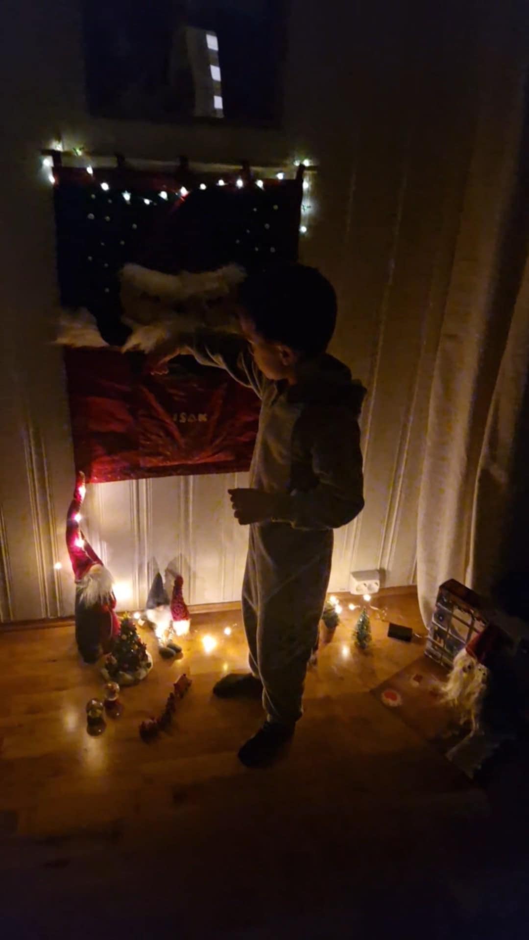 Endelig var det 1. desember og rampenissen starta med rampestreker. Mens jeg fortsatt sov, etter en kveld på julekonsert og tur på puben, sto Hanne og Isak opp. Der hadde noen gjort klar adventkalender.