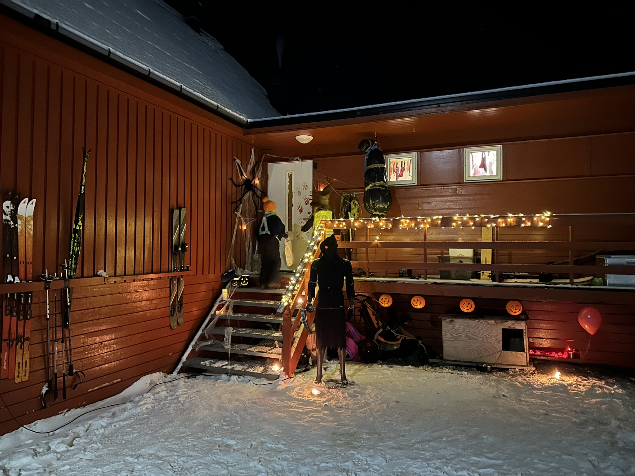 Ingen tvil om at slike «høytider» er populært her oppe også, det kryr med spidermenn(spiderhenn?), spøkelser, skrik-masker, hekser og trollhenn. Isak storkosa seg, vi var innom flere kjente og bøtta ble halvfylt med søtsaker.
