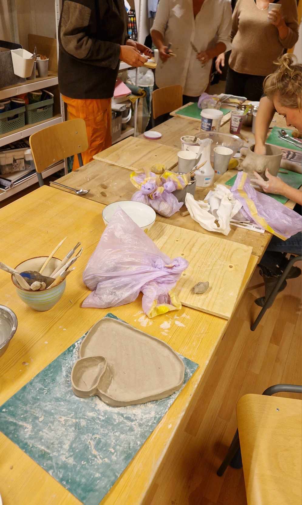 Hanne gikk etterpå oppover dalen, usikker på hvilke sko hun hadde på seg. Målet var å fortsette på keramikk-kurset hun starta på i går kveld, spennende å se hva som blir produsert derifra etter hvert.