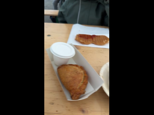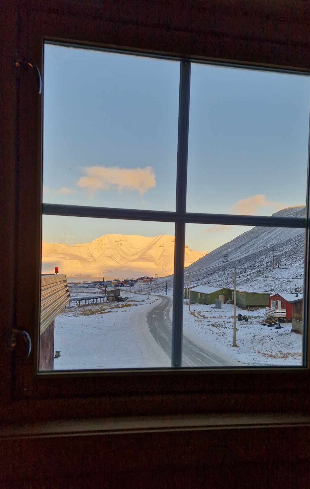 De to skytterne dro etterpå til butikken for å handle lørdagsgodt. På vei hjem stakk vi hodet innom teltet som er satt opp nede i sentrum. Det er matfestival "Smak Svalbard", og vi lukta vafler. Vafler til lunsj på Isak, friterte reinsdyrboller på meg. Teltet har vært fullsatt de to siste dagene, men nå var det heldigvis god plass til oss.