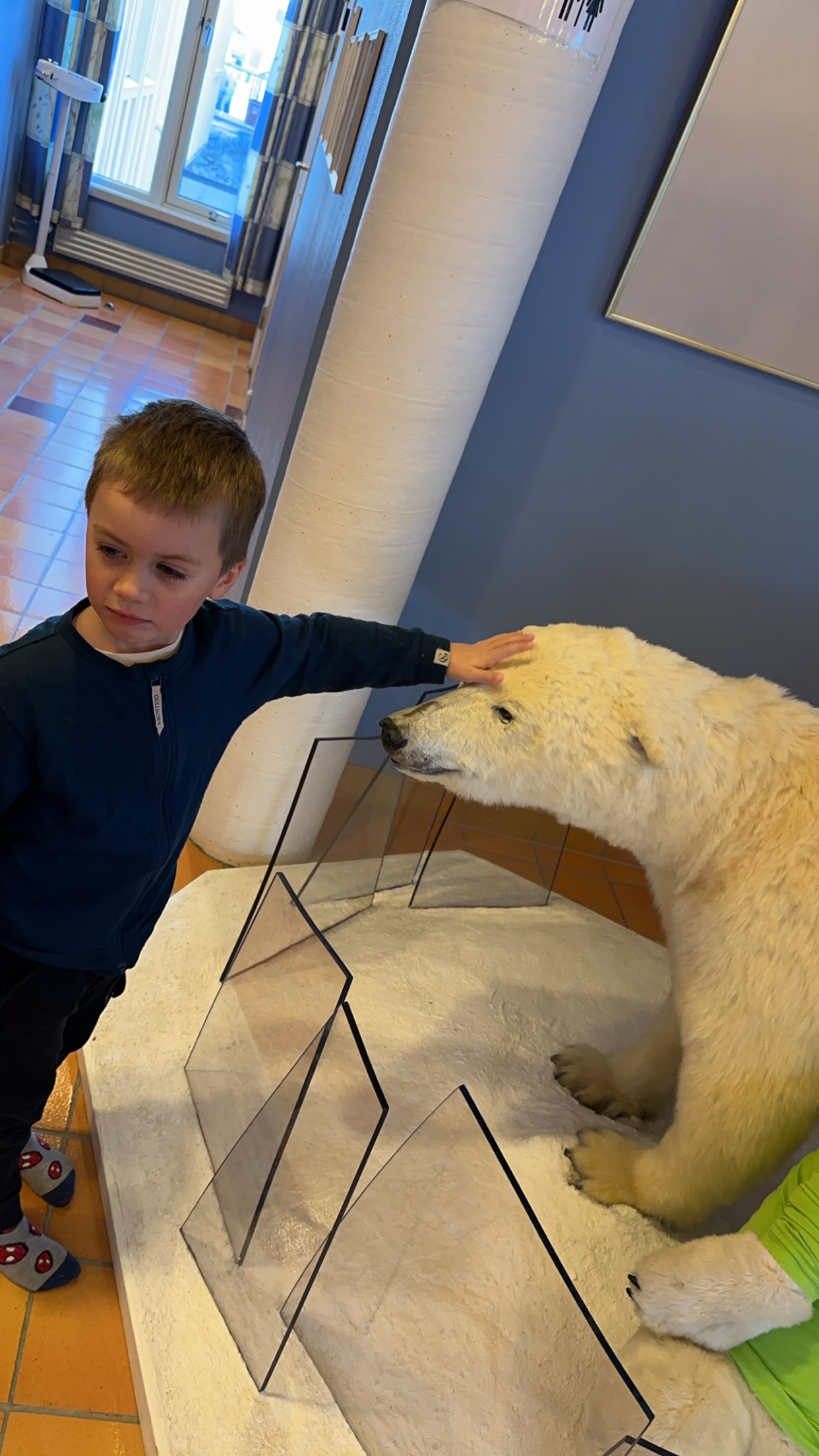 Det er fredag, det er helg, og det kan se ut som virusene er på vei ut vinduet. Isak har som sagt vært syk, og etter fem dager med feber så måtte vi teste sykehuset også. Der traff vi en hyggelig isbjørn, og en like hyggelig doktor. Han var trønder.