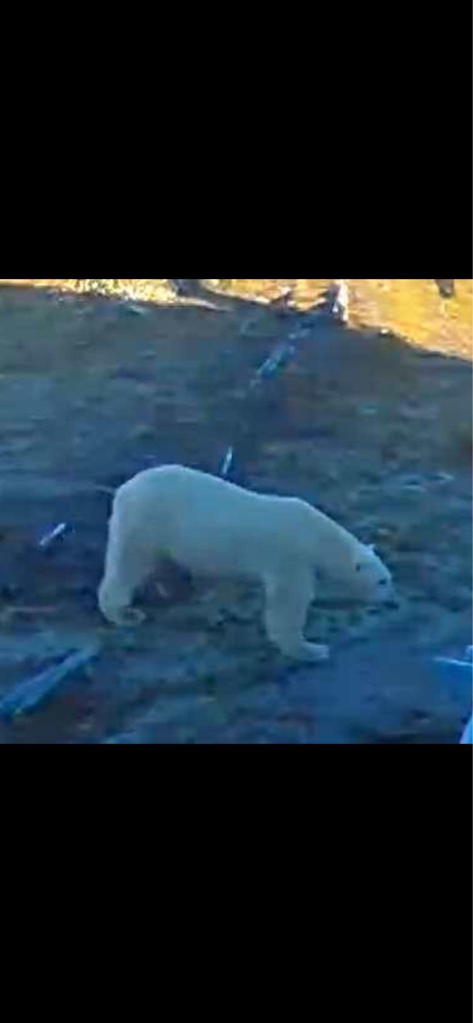 Legger også ved første bilde av gårsdagens bamse. Bildet er tatt av kameraet på hytta til han som meldte fra til sysselmesteren at den var på vei inn Adventdalen.
