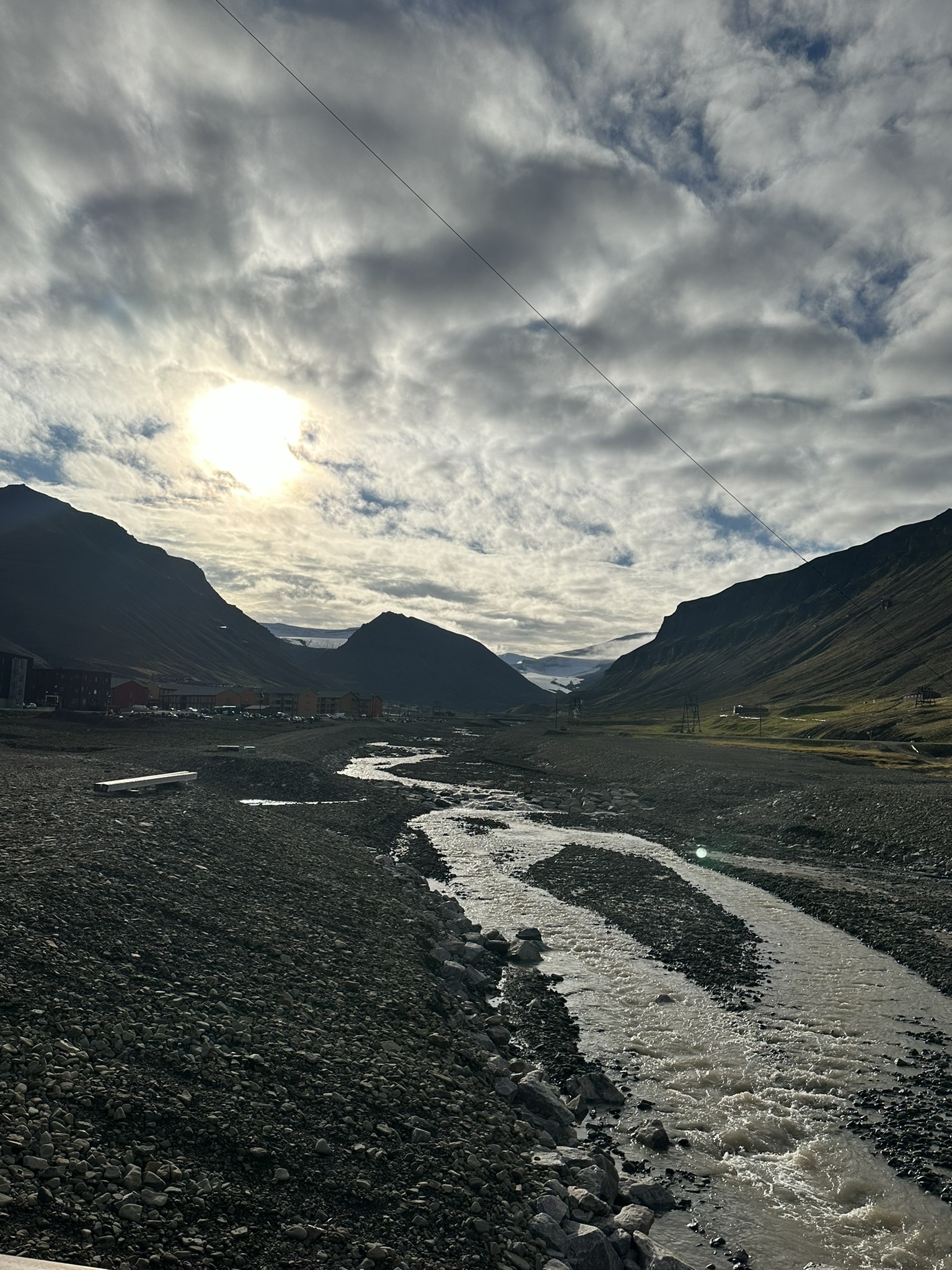 Det er litt kaldt, så shortsen er kun på innendørs for tida. Glad vi hadde bukser på når vi tok lunsj der oppe i den kalde vinden. Vinden er også annerledes her oppe i Longyeardalen, det er ikke vindkast, den er konstant. Og det til og med uten en eneste vindmølle.