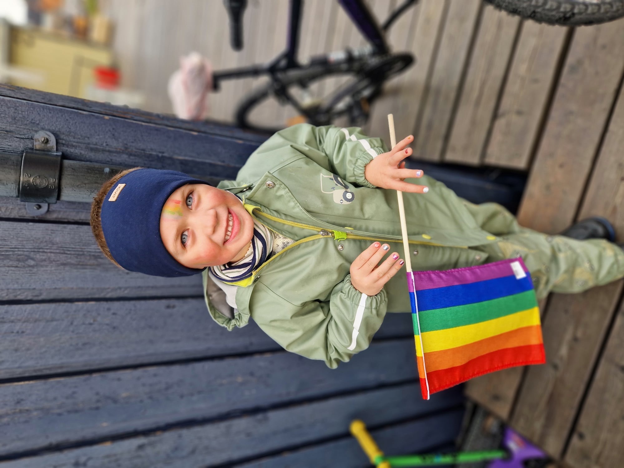 I den ånden så har det vært «pride-kurs» på barnehagen til Isak i dag. De mala ansikt og negler i regnbuens farger. Ferdig pynta så gikk de en liten parade opp gågata.