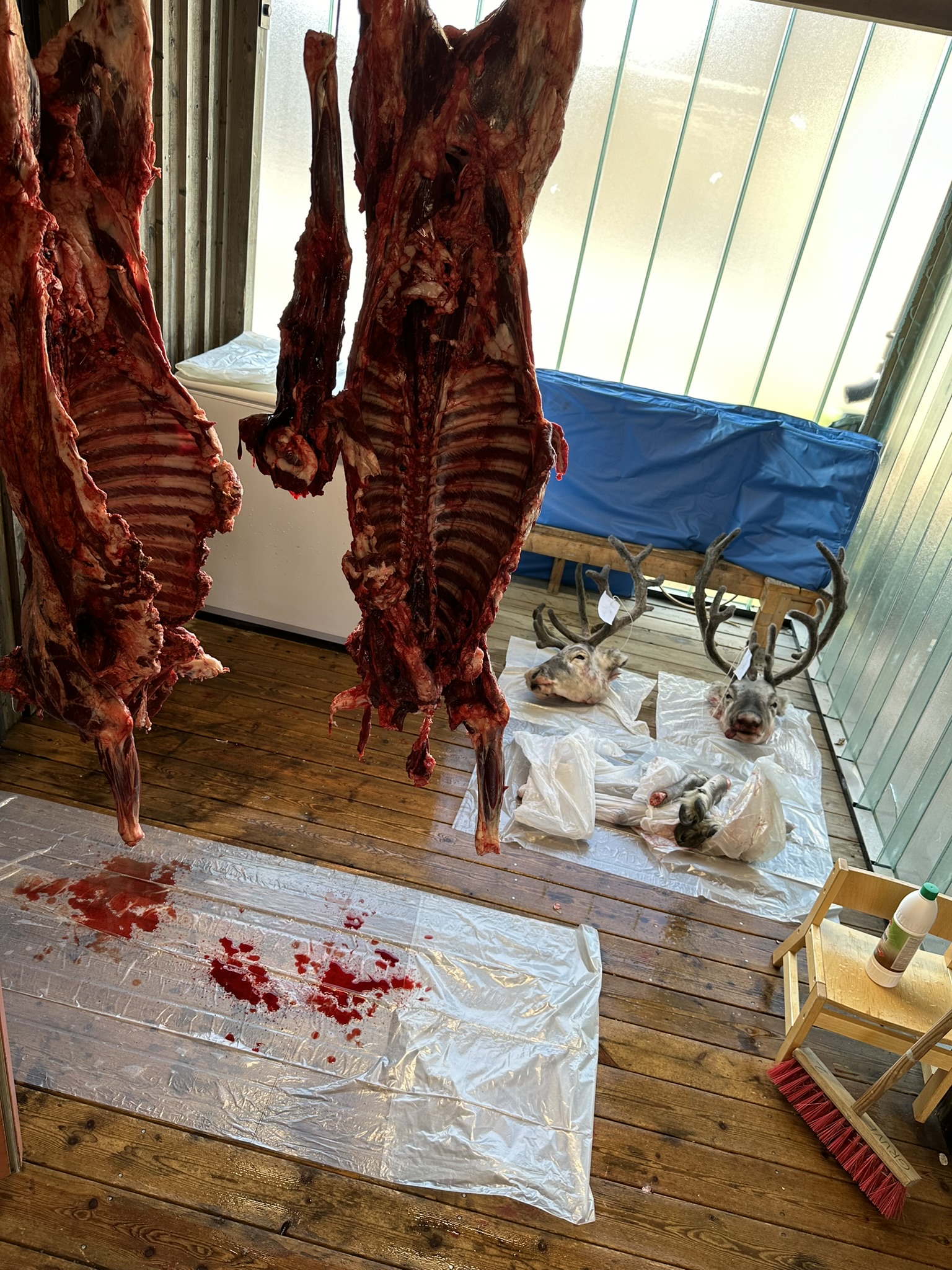 Nå henger kjøttet til møring i mellomgangen på barnehagen. Det skal bli til kjøttsuppe hvor foreldrene blir invitert for å spise. Hoder og bein skal sendes til forskere. Neste år er det Isak som er isbjørn og skal på jakt.
