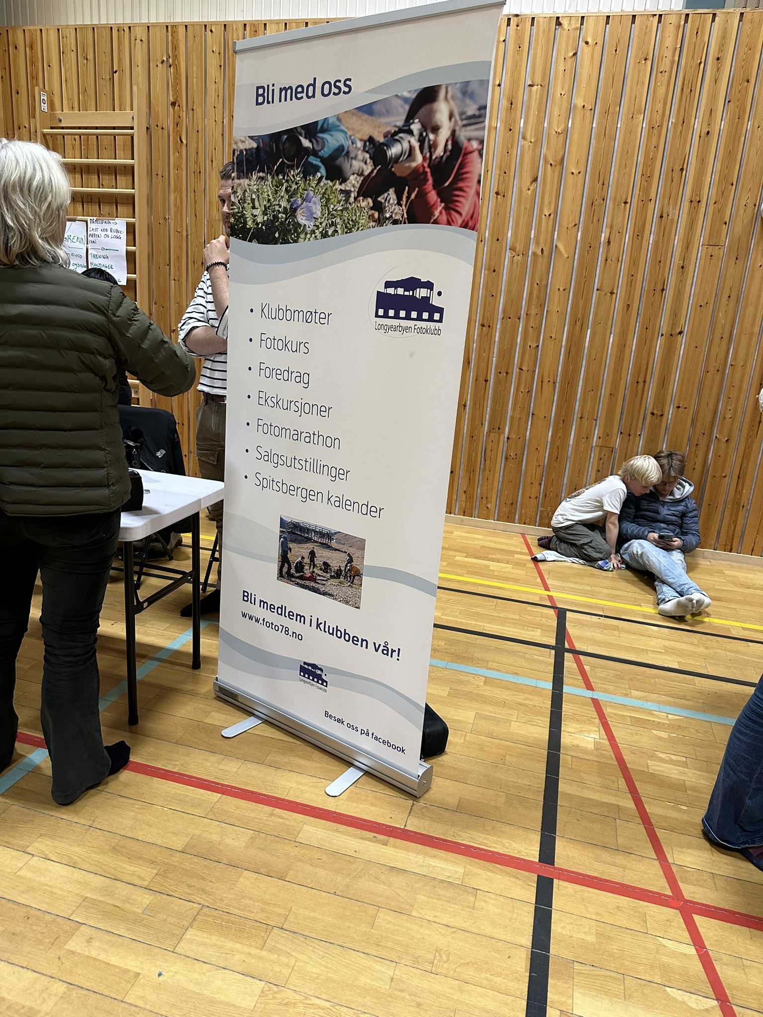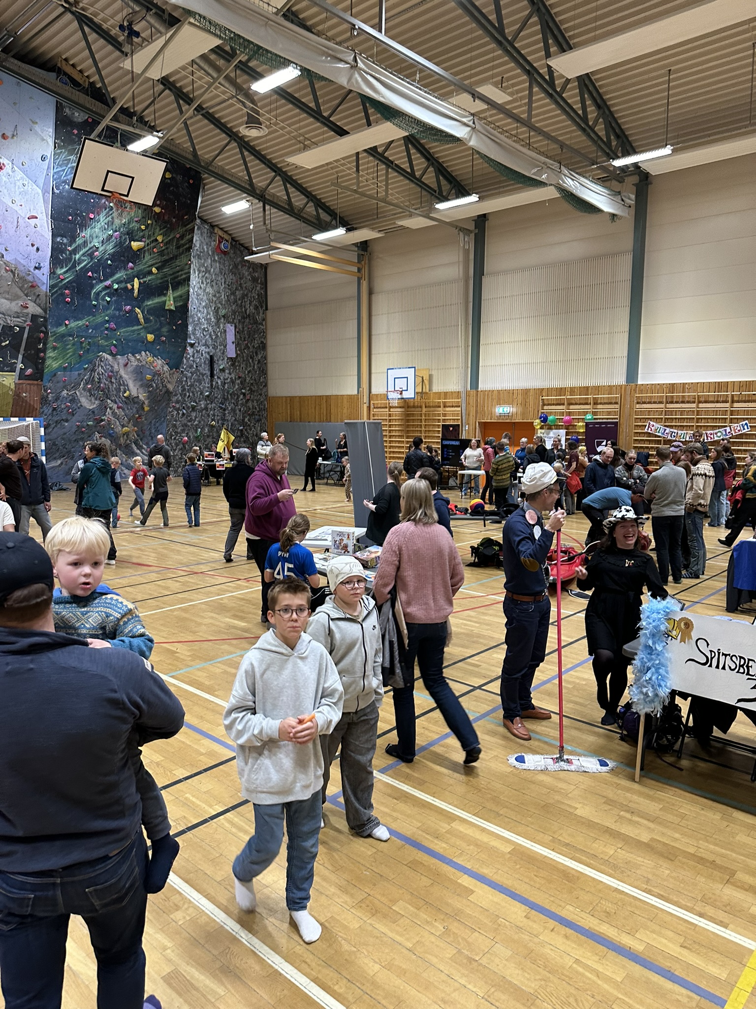 Etter fiskegratengen gikk vi en tur opp til idrettshallen hvor det var messe. Lag og foreninger presenterte seg på stands. Storband, mannskor, blandakor, tundra dundrene(damekor), bordtennisklubb, fotoklubb og mye mer. Isak fant seg en tjukkas han hoppa på hele tidsrommet vi var der. Nei, ikke meg han hoppa på, var en sånn blå en de har i gymsaler.