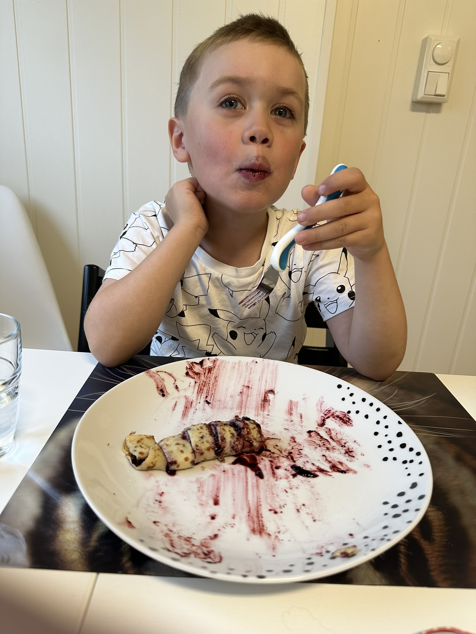 Det ble til slutt blåbær på pannekaka i dag, Hanne er på personalmøte.