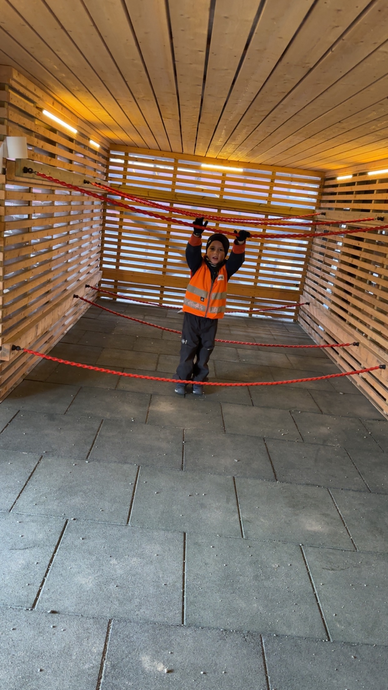 Klatretårnet brukes i hovedsak når været ikke er forsvarlig å være ute i. Da åpnes også uteområdet som er under bakken, en fullverdig lekeplass med sandkasse, disser og andre lekeapparater. Det blir fint å ha i vinter.