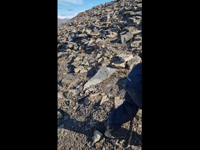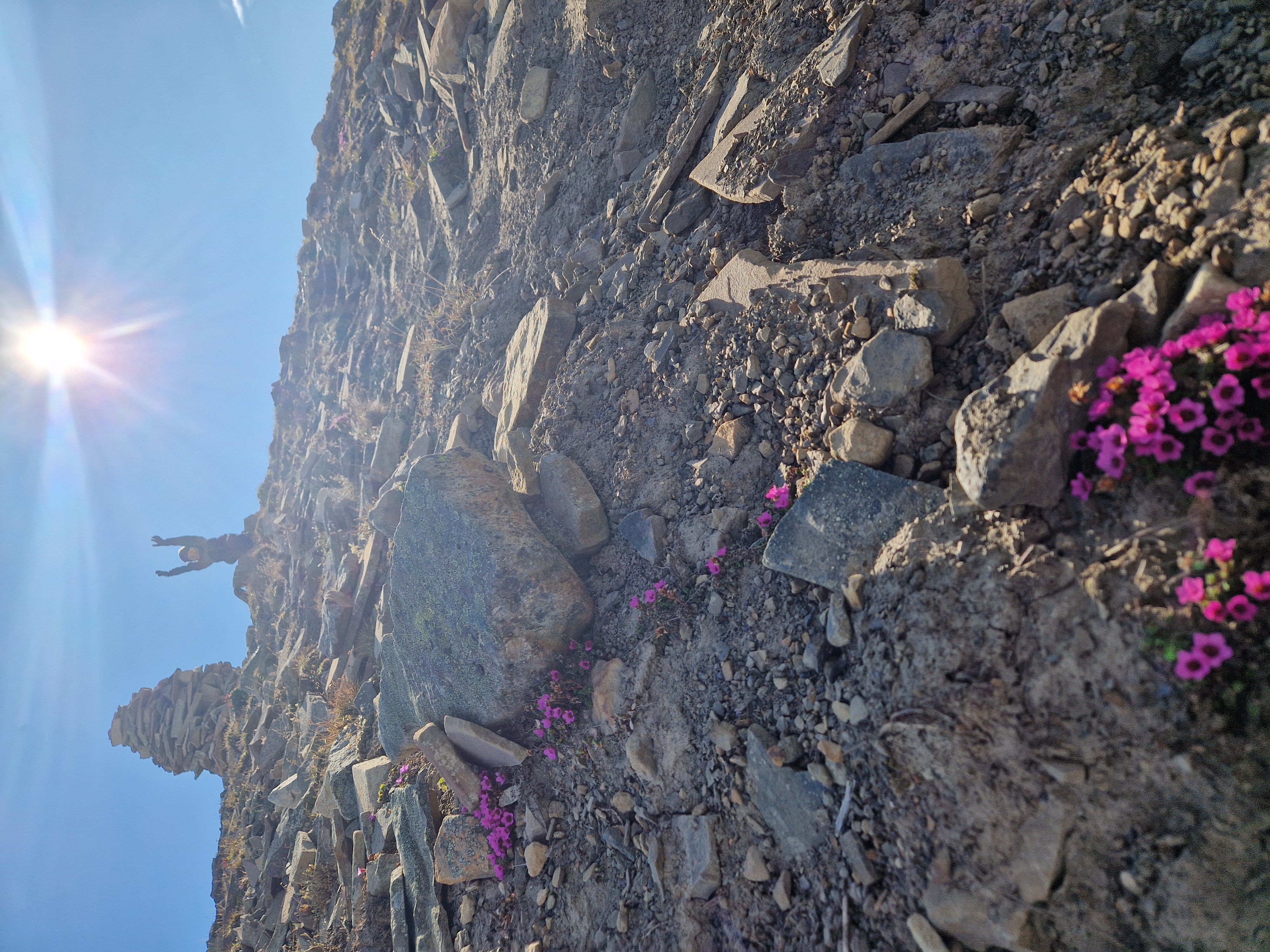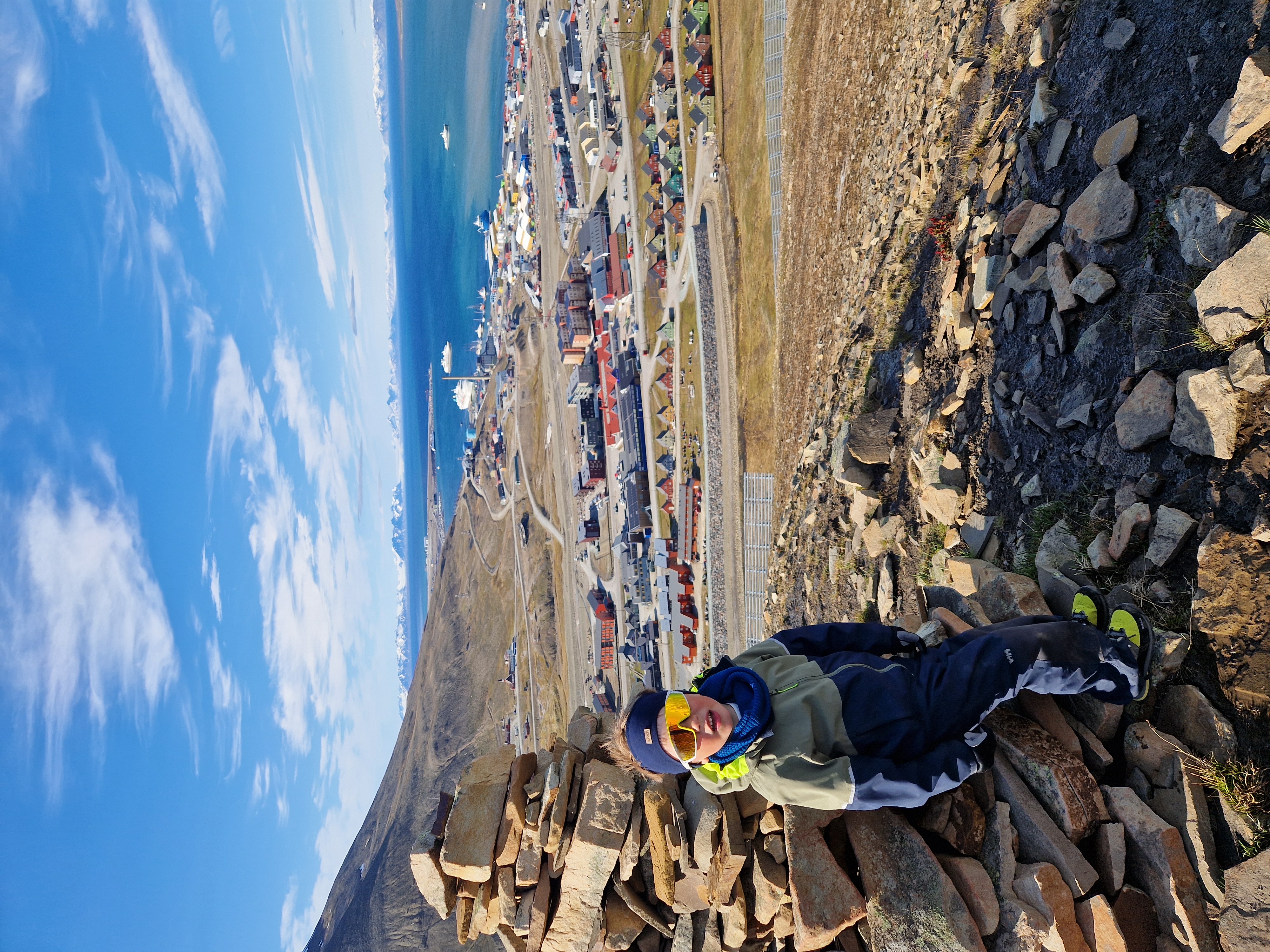 Hanne diska opp med lunsj som vi spiste ute i utemøblene, som er sammenspikra paller. Etter måltidet gikk Hanne og Isak opp til varde nummer to på Sukkertoppen for å se etter en av turbopostene. Det var for vindfullt til å gå til toppen.