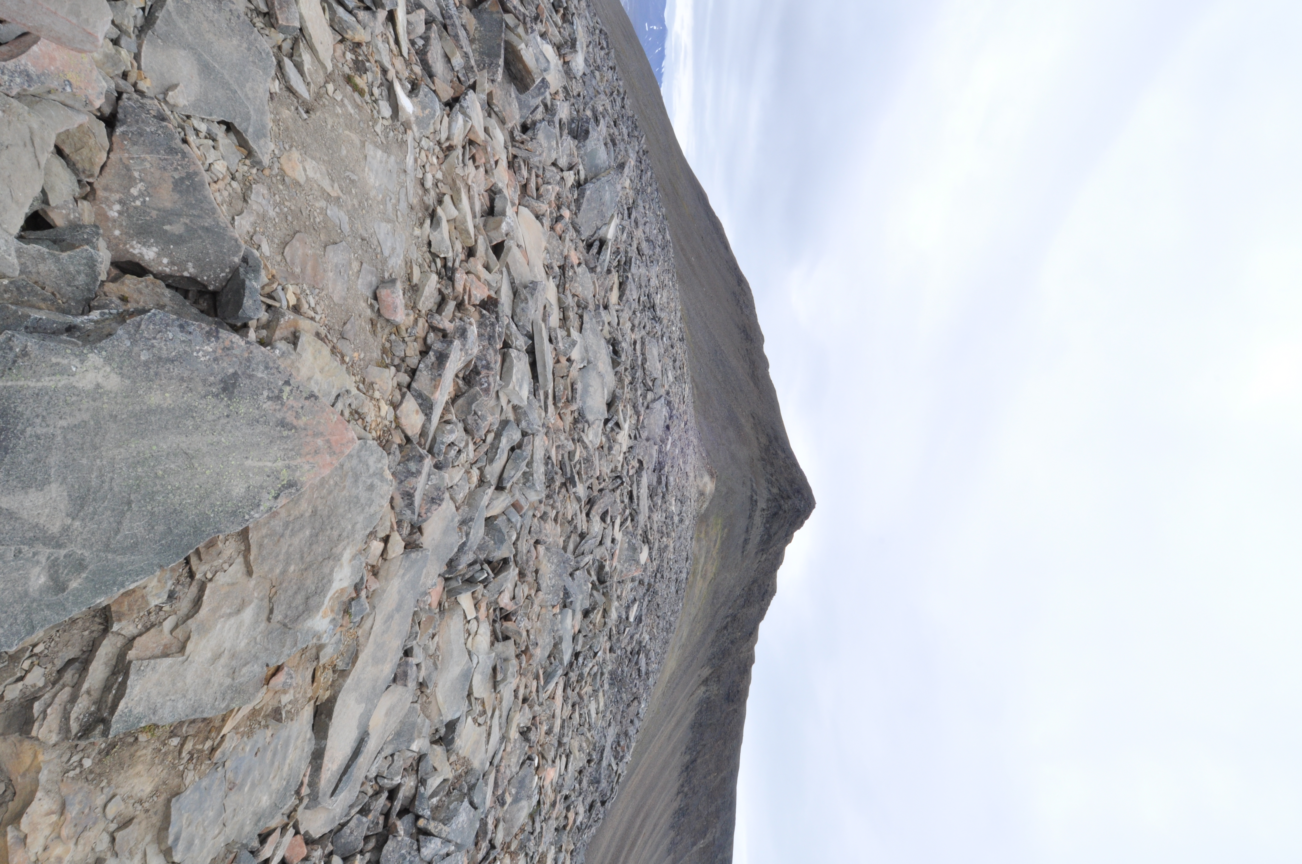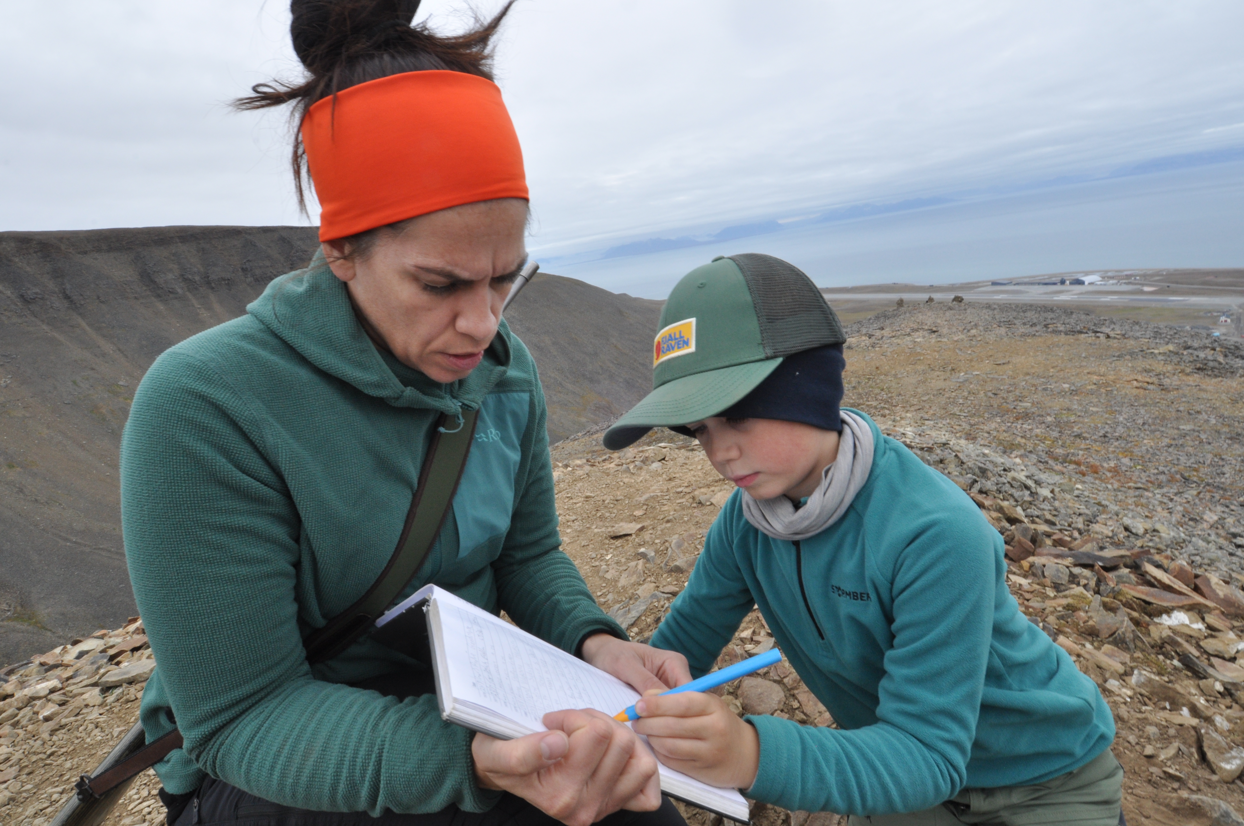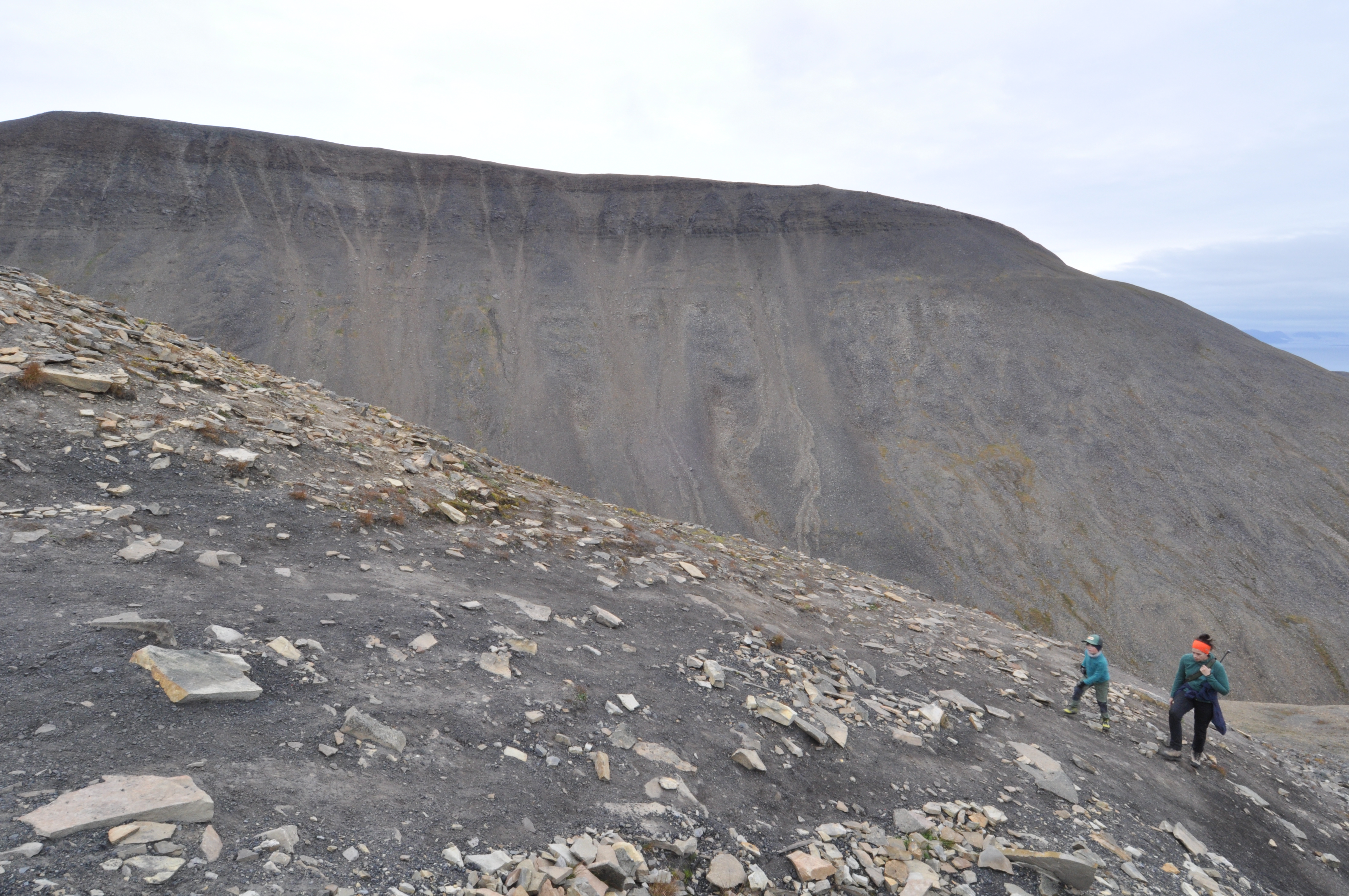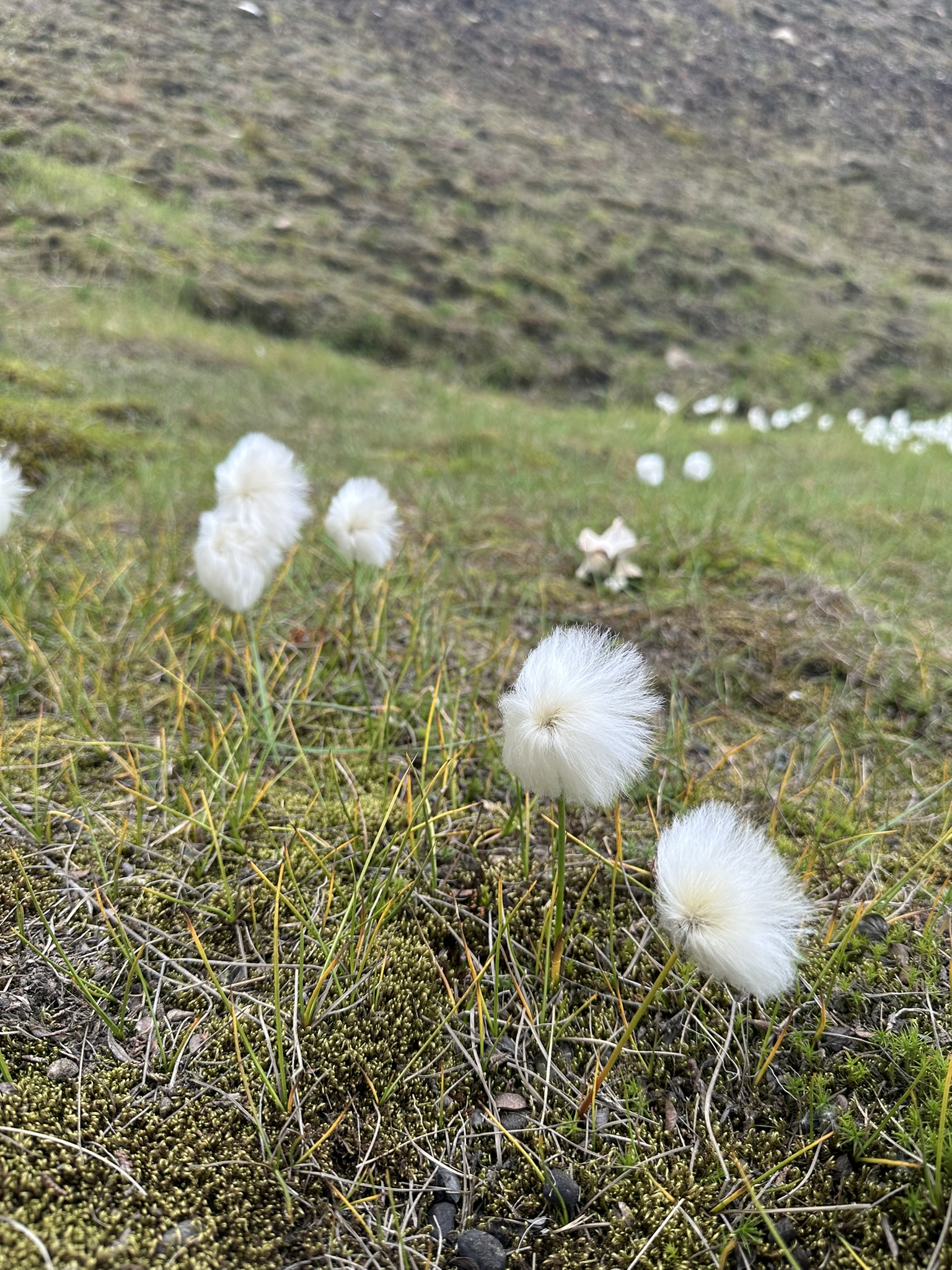 Blomsterdalen ligger like ved frøhvelvet og vi parkerer nede ved Burmastien. Vi gikk opp tundraen og til Blomsterdalshøgda. Isak raser opp de 295 høydemetrene over 3,5km. Må bare få litt "bensin" til strategiske tider. Rett før toppen fant vi Trøndergruva, et spennende kulturminne. På toppen fant vi turboposten og turboka, her så vi 10-topper-deltakerne hadde vært i natt. Blomster fant vi også, i Blomsterdalen naturlig nok. I Svalbardloven står det tydelig at vi bare kan se på plantene som vokser på tundraen. Ingen blomsterplukking med andre ord. På vei ned det bratteste partiet fortalte Isak en vits, til god latter fra meg og Hanne. Vitser har blitt en greie for Isak.