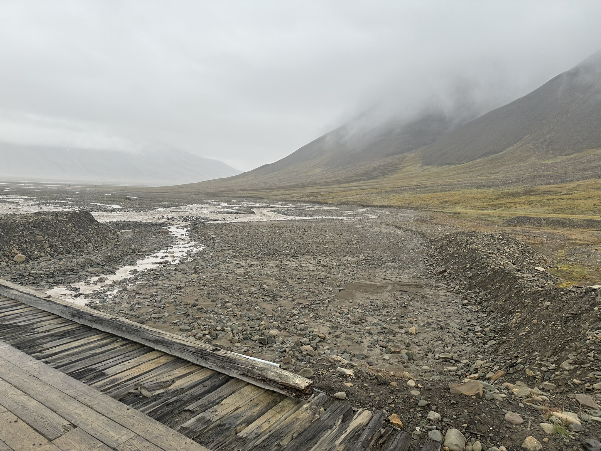 Dagen i dag har vi brukt på å gå inn i Endalen sammen med en fin gjeng. På veien fant vi nok en turbopost. I tåke og 7 grader gikk vi til inngangen til Gruve 5, her spiste vi lunsj. Som bestod av kjeks, sjokoladekake, kakao og mer kjeks. Rundstykkene ble med hjem igjen. Fikk også endelig anledning til å fly litt drone igjen, i tåka ble linsa raskt duggete..