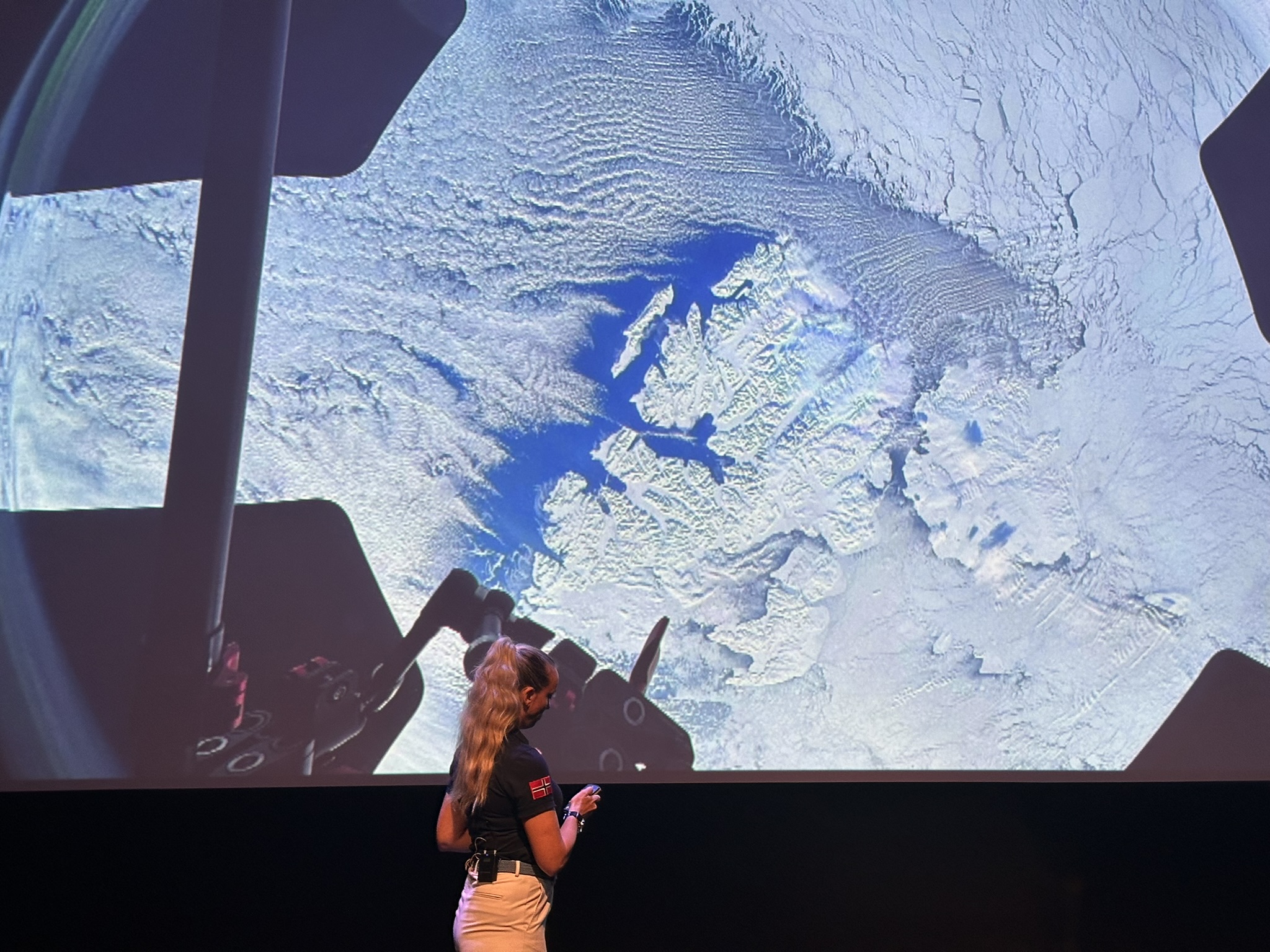 Forrige reisebrev glemte jeg at jeg var på foredrag. Vår lokale astronautkjendis hadde forrige uke foredrag i kulturhuset. Det er ikke hver dag en møter en norsk astronaut, det finnes bare ei. Ble jo litt starstruck.... Isak hadde sendt med meg et spørsmål: "Hvordan bæsjer man i verdensrommet". Jeg turte ikke spørre, men hun forklarte litt rundt toalettbesøk i kapselen. Det tok ikke mindre enn 30 minutter å gjøre sitt fornødne der oppe i bane rundt polene. Samme gjennomsnittstid som en voksen mann det da. Hun er jo fotograf av yrke, så bildene hun viste frem var helt fantastiske. Bildet dere ser er av Svalbard.
