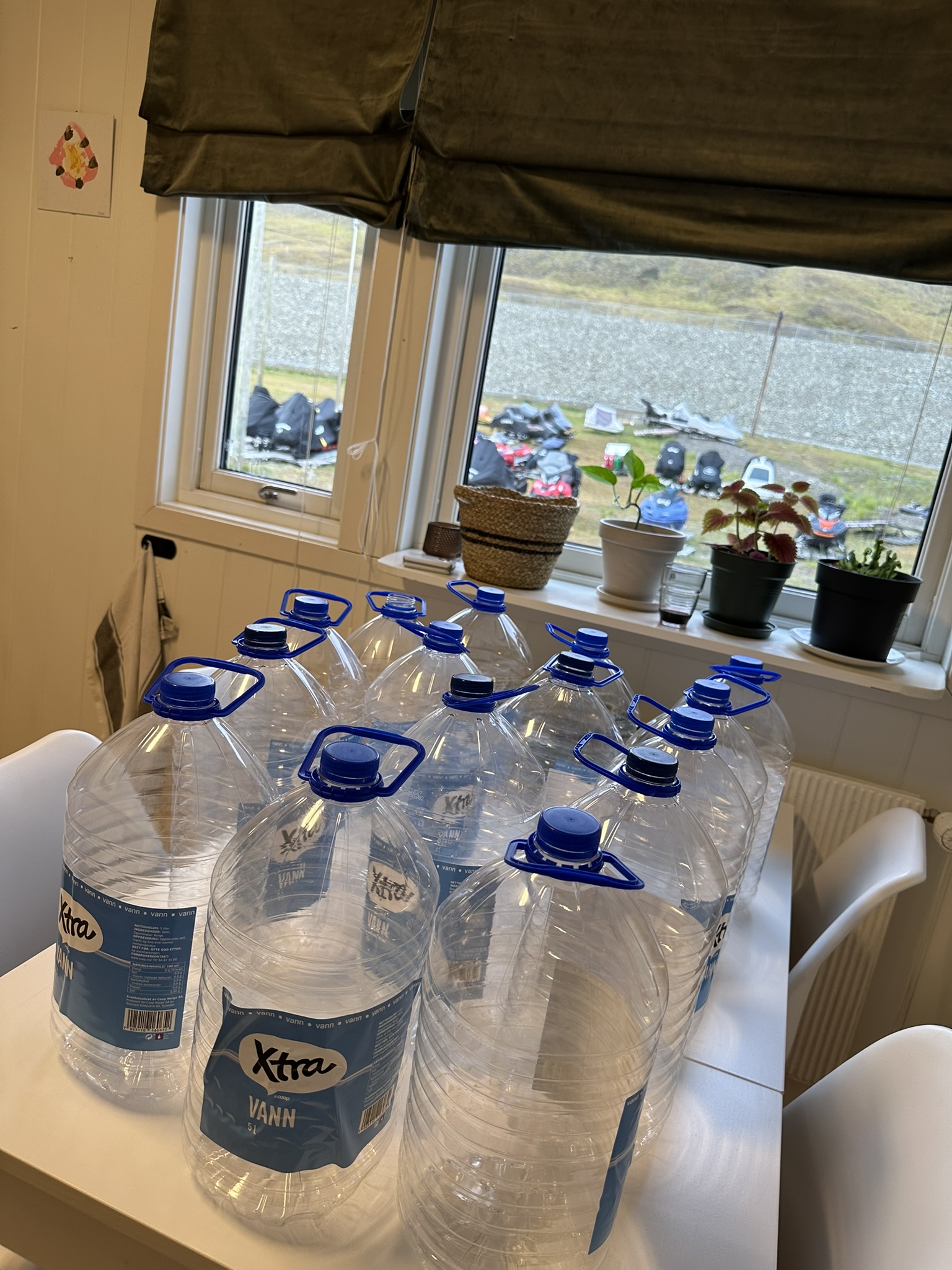 Når vi er inne på vann, status på vann er vel at det fremdeles er salmonella i drikkevannet. I tillegg er det høye verdier av forskjellige mineraler. Ikke for høye verdier sier ekspertene, for høyt sier jeg. Det er mange som mener det samme, og Coop Svalbard har meget god omsetning på vann. Kan ha en sammenheng at du slipper fis-smaken som du får til tider fra springvannet.